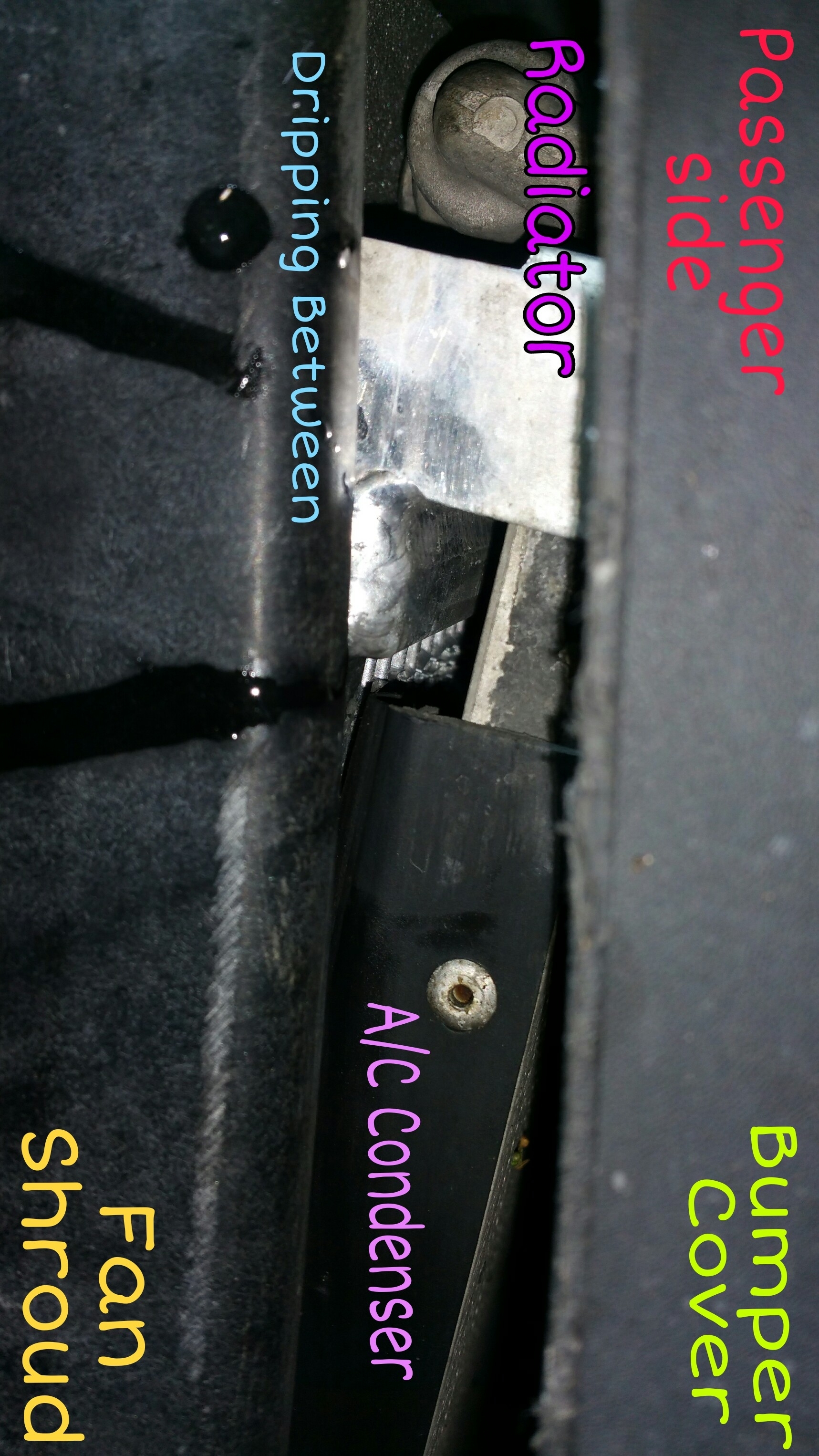 Looking for ideas on what might cause a coolant leak yielding accumulation on top of supercharger and around upper air duct that might not be related to the head gasket. Coolant tank has obvious signs of loss from venting through valve (not the OEM tank.) Upper rad hoses quickly warm to touch, no leaks. Radiator fan shroud is dry. Leak is limited to passenger side, not water pump. Fluid runs straight down onto alternator, steady drip at floor, tank loss approximately half, fluid viscosity good, minimal discoloration likely from residual rust.