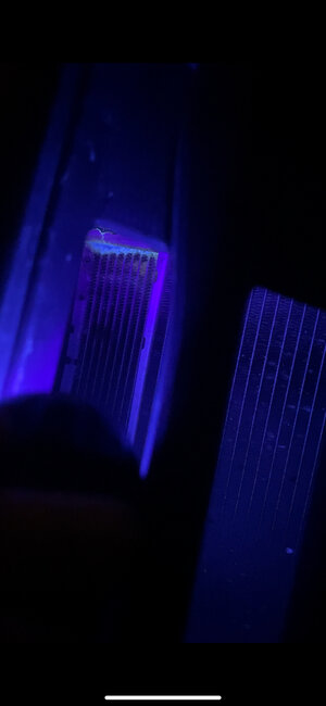 For a while now, I’ve had a slight coolant smell when the heat is on, and I was slowly losing coolant. No mechanic could find the leak under a pressure test, and I eventually tried UV dye. I believed I traced it back to this location in the picture. What do you take of this?