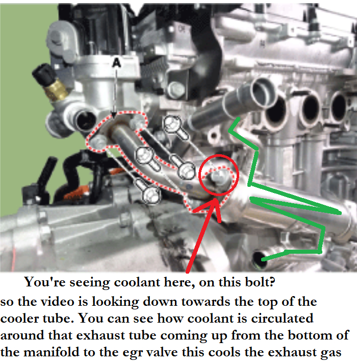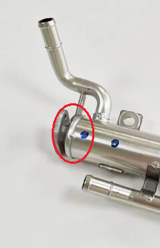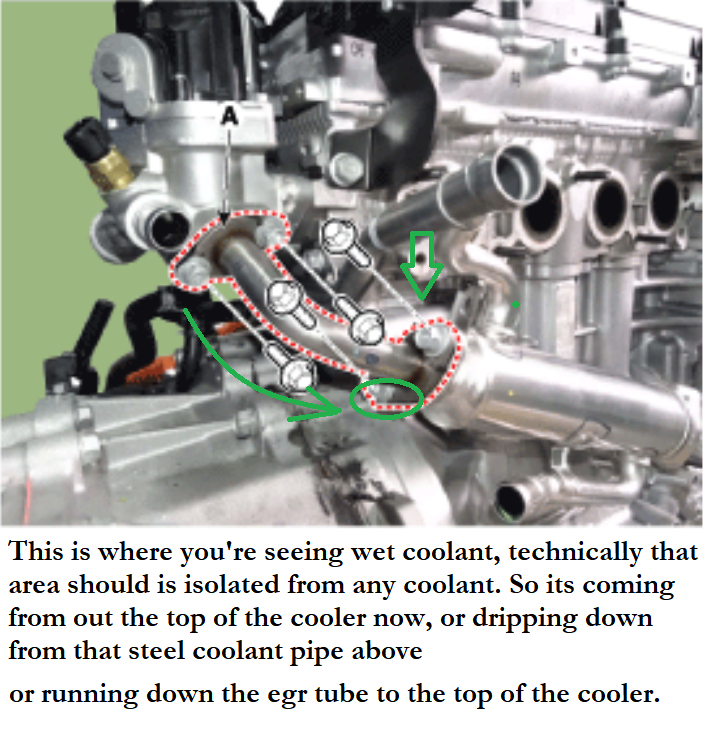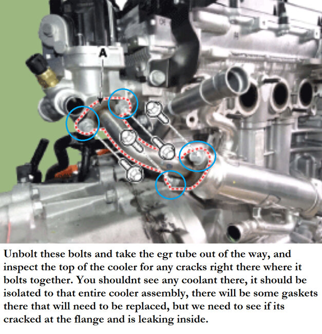 I'm not against you buying a less expensive one, I understand how these things go. That was the whole reason I became a tech to begin with, to save money and fix my own vehicles. I'm thinking a weld cracked right around this top ring here where the internal pipe is inserted. I see one on here for about 140, same part number I'm seeing at other locations on that year and model. I would confirm the issue though. After all this, even if you just unbolt the bottom section that goes into the manifold, you should see coolant drip out without even having to fully remove the bolts.