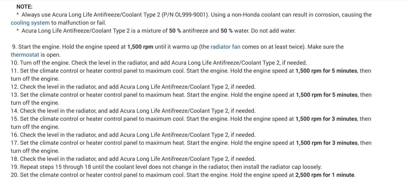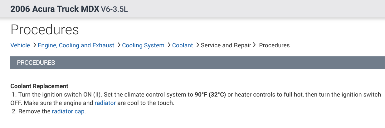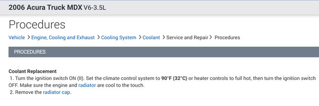 In the diagrams down below I have included the instructions from the vehicle manufacturer for the draining and filling of your vehicle's cooling system. Please go through this guide and get back to us with how everything turns out.