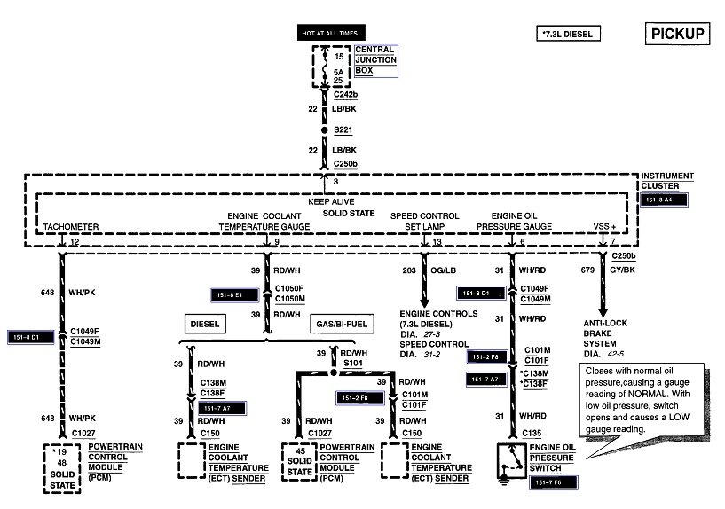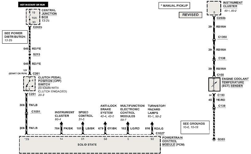 This first diagram is for the coolant temperature sensor as it relates to the instrument cluster. The second one is for the same sensor as it relates to the Engine Computer. As you can see, they're the same circuit, # 39, and the same sensor.