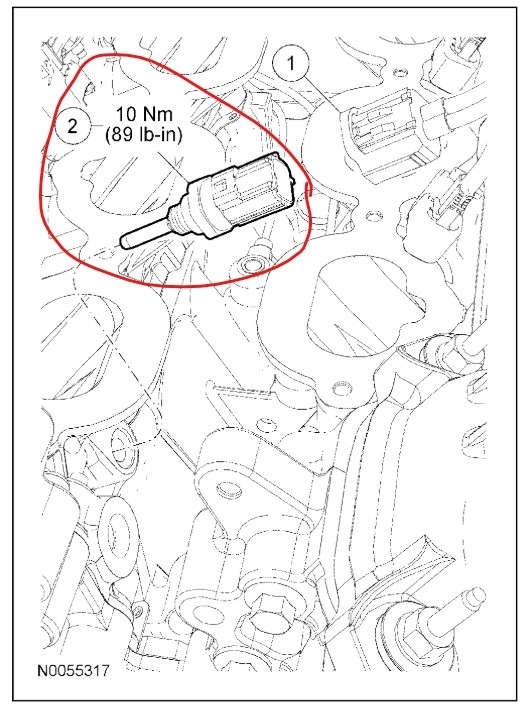 It is in the engine valley underneath the intake manifold. Part number 3L7Z6G004BA To change it you have to drain the coolant and remove the upper and lower intake manifolds. Then the sensor is in the cylinder head below the intake port.