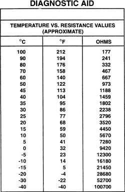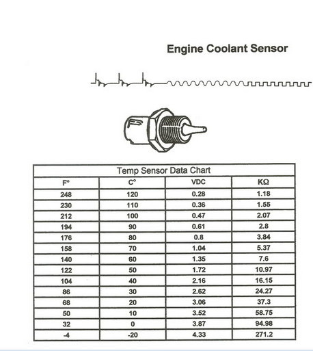 An instructor I used to work with forced his kids to memorize these resistance values, but that is a big waste of time. Not every sensor will measure exactly the same resistance at a given temperature. Their individual characteristics is part of what Engine Computers learn by comparing various sensor readings and operating conditions. What you need to look for is if you have something or an open circuit. Even an open circuit isn't common. If you DO get a resistance reading, you can compare it to the charts, but don't get excited if it isn't exactly what is listed.