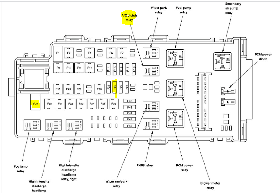 Start with this and let me know the results. If you look at pic 3 below, I highlighted the cooling fan fuse, compressor clutch fuse, and compressor clutch relay.