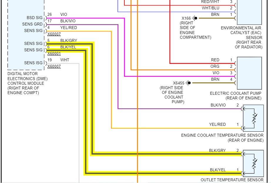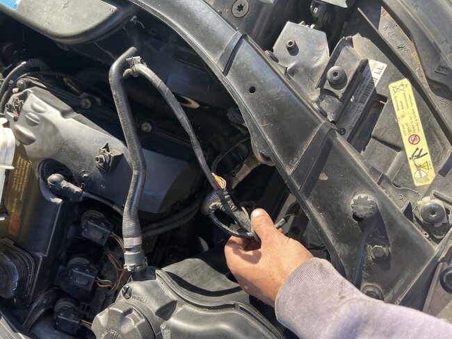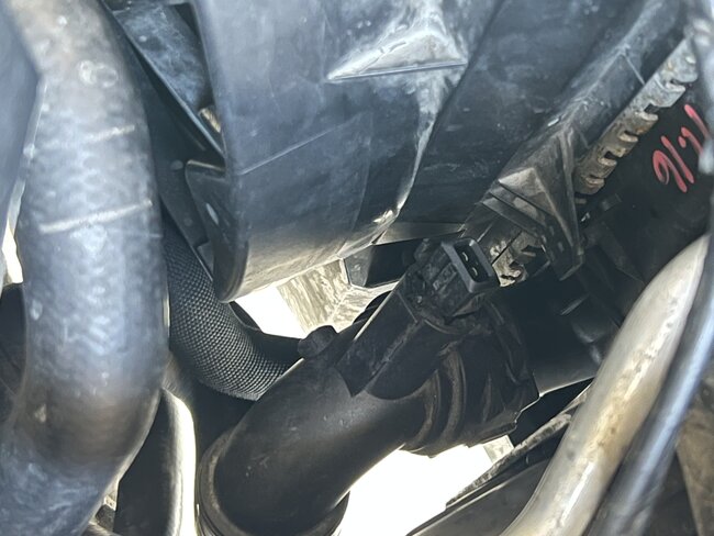 I bought this car, I the wiring is all messed up, I will eventually post another question concerning that... But anyway my fan is roaring, and I look by a coolant hose and notice a missing plug, I find the plug in the air filter box, I have. I clue where the wires go, while other wires are out of place.