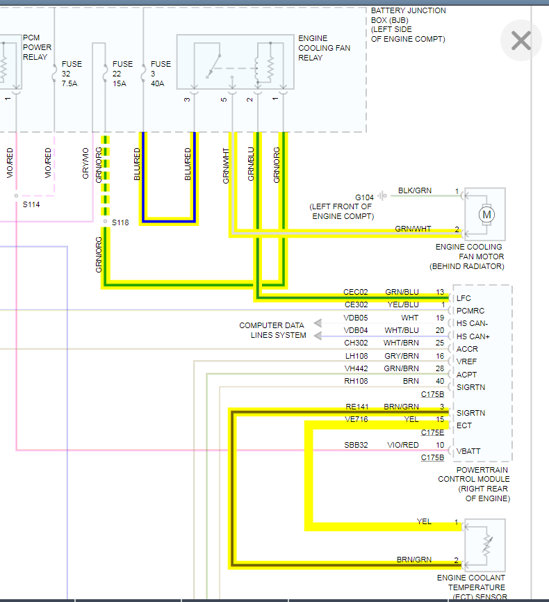 However, it very well could be a PCM for other reasons. Let's circle back to the relay. When you jump 12 volts to PIN 5 of the relay, does the cooling fan come on? Take a look at the wiring diagram and let me know this and we can go from there.