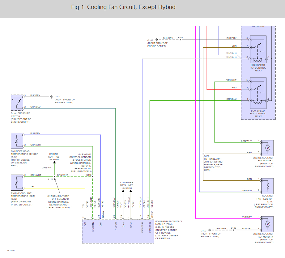 Yesterday I checked for power at the driver fan plug and had my 12 volts ref (key on engine on engine warm but not blazing hot) and then disconnected the three fan relays one by one and would lose the voltage when the high and low speed relays were removed. Not the main unit relay. (Odd?)
