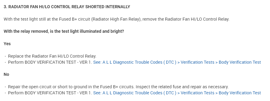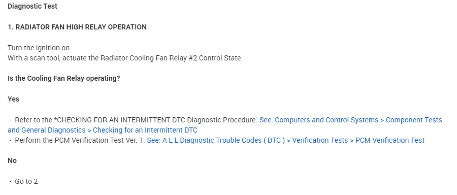 This could be the result of a few different things. It's likely an open circuit in the cooling fan high relay circuit.