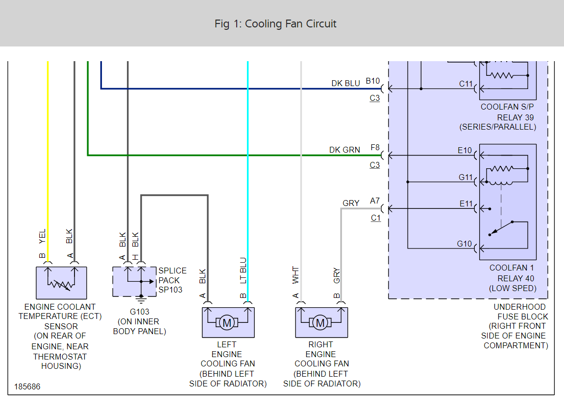 Please go through these guides. I have also included specific tests for your vehicle's fan relay. They are straight forward and just require the use of two fused jumper wires. I have also included exploded diagrams and location of the relays, as well as wiring diagrams. Please run the tests and get back to us with what you find out.