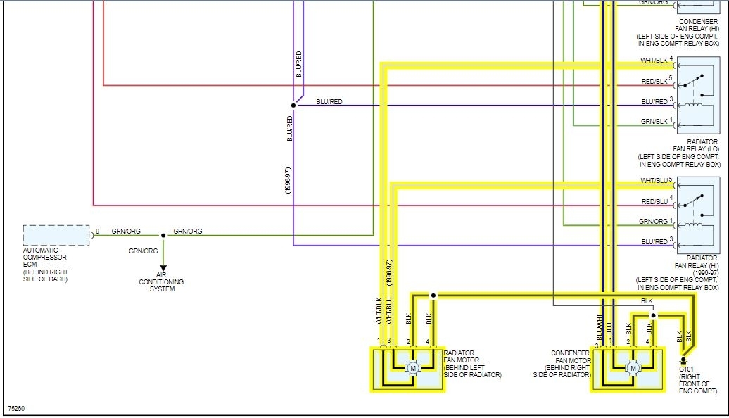Driver's side cooling fan is burned out will that keep the passenger side fan from working. The passenger side only works if I put jumpers on it. Car runs hot when in idle.