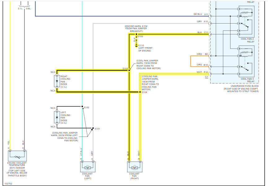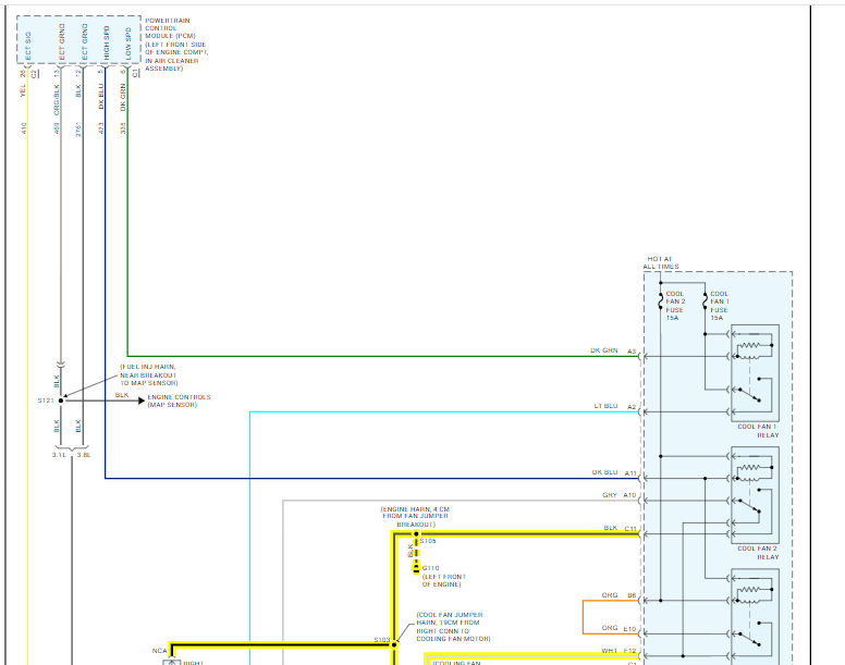 Engine will overheat and go into red on temperature gauge on dash. Have hooked up to the diagnostic connector and used software to check engine temperature which was 224 degrees. Has no DTC 's what temperature does the engine ECM bring the cooling fans on. It has two fans which can be operated by pulling the fan relay and jumping the contacts at the relay panel. Has no ground from ECM to activate relay.