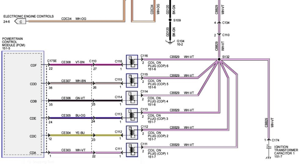 Hi, I had A P0302 code so I have been trying to check it. I have replaced the COP and that did not fix the issue. So then I went into it deeper it seem to have plus twelve volts at the plug and coming from the center plug on the PCM, but I cannot find the ground. I put a test light between the ground at the COP and plus twelve volts battery it when it is supposed to fire it is extremely dim compared to the other working COP. Can you please tell me where to locate the ground so I can check for a bad wire?