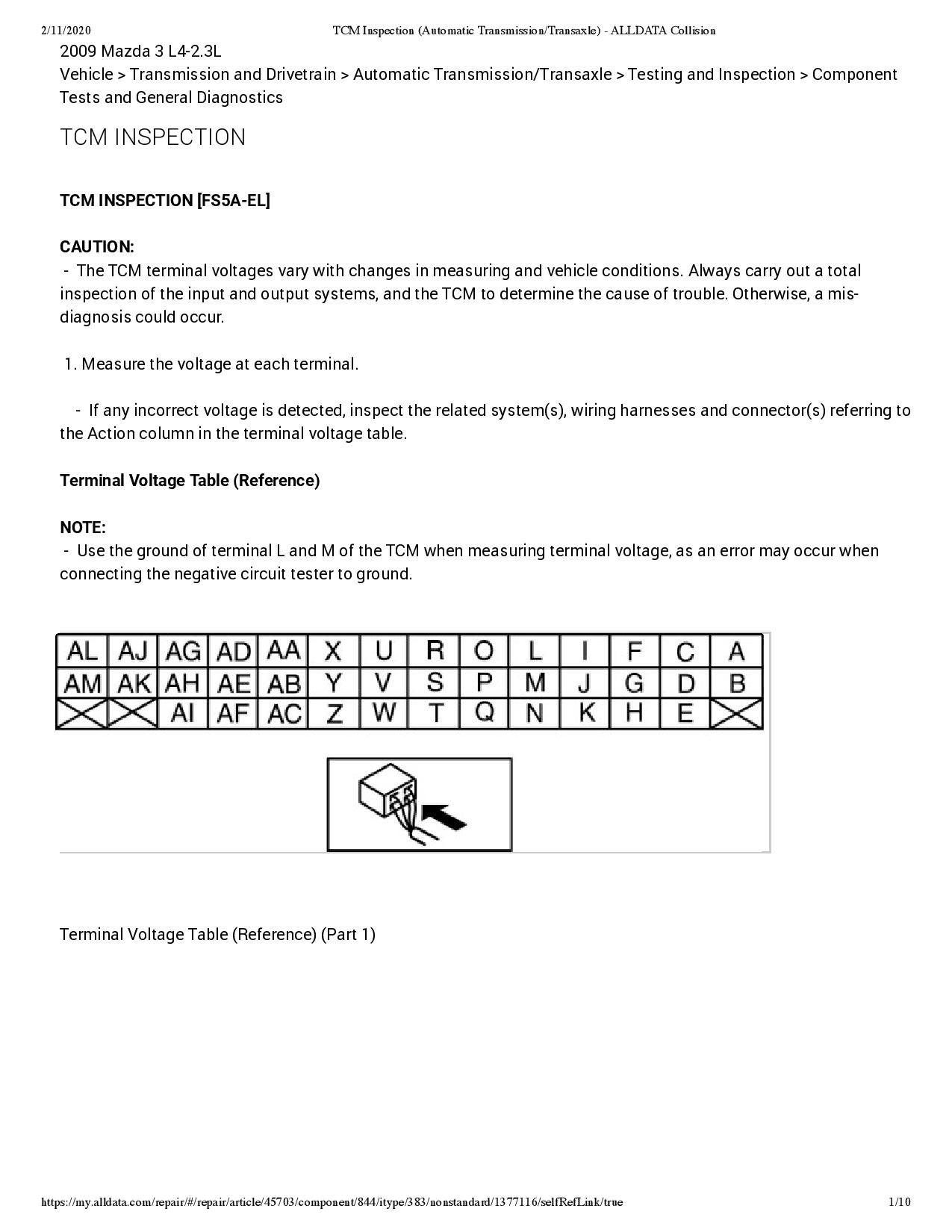 I have also attached the testing information for the terminals at the TCM plug connector.