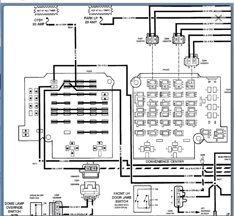 More than likely the courtesy lamp, switch, or door switch is shorted. However, can you confirm this is the 20 amp CTSY fuse?