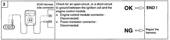When the ignition power transistor is turned ON by the signal' from the ECM. It sends the signal to the ignition coil, then primary current is shut off and a high voltage is induced in the secondary coil.