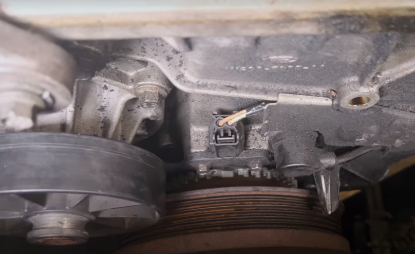 This sensor is near the front of the engine at harmonic balancer. This image can help you see what I am talking about. It looks like you need remove the sensor bolts to change it out.