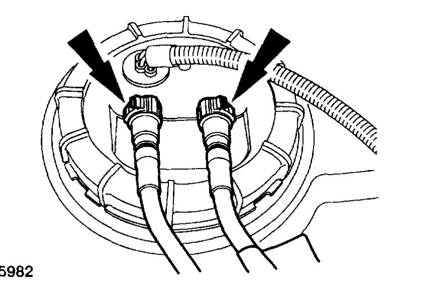 5. CAUTION: Note the location of the fuel pump alignment tabs.