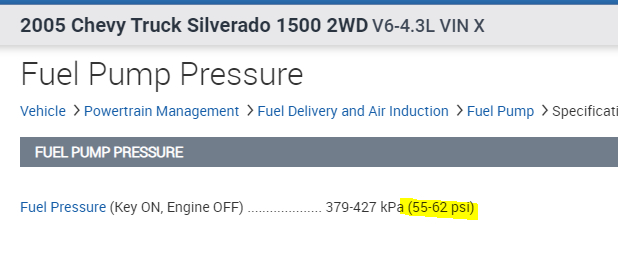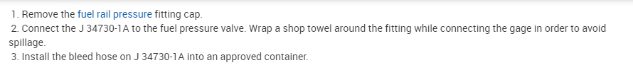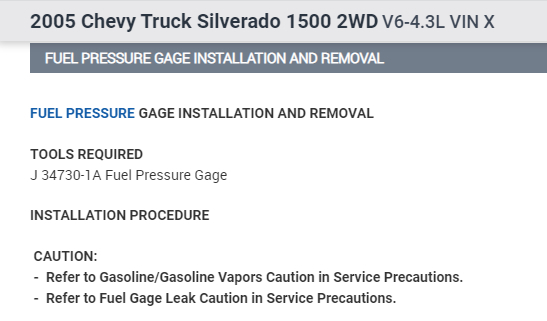 If you look below, I included the directions for attaching the fuel pressure gauge. The last picture provides the manufacturer's pressure specifications.
