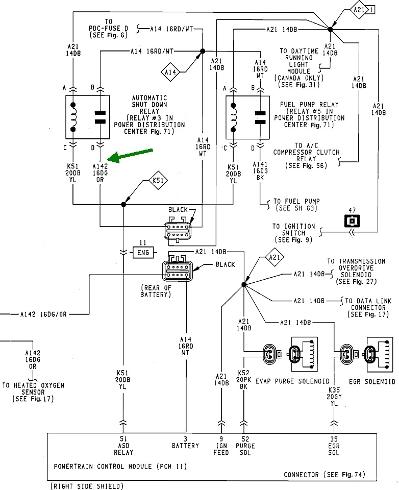 When the ASD relay doesn't turn back on during cranking, the two common suspects are the crankshaft position sensor and the camshaft position sensor. If one of those failed, you might have a diagnostic fault code to tell you which circuit to diagnose, but the absence of a fault code doesn't mean the sensors are working properly.