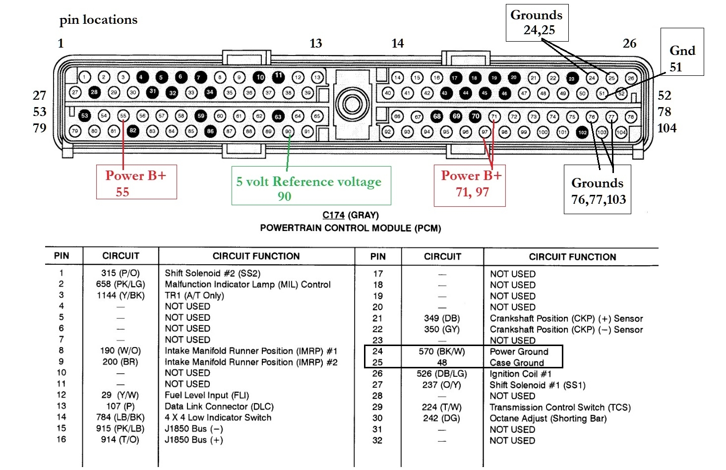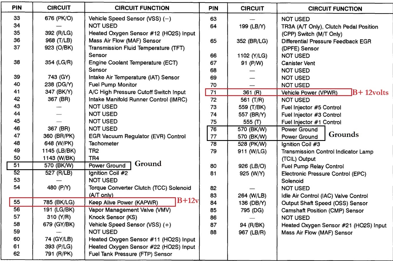 Diagrams 3, 4, 5 are for the PCM Connector so you can check for power and ground right at the connector, hope fully it's not too confusing, you just need to concentrate on the 6 Grounds and the 3 Power feeds to the PCM. D