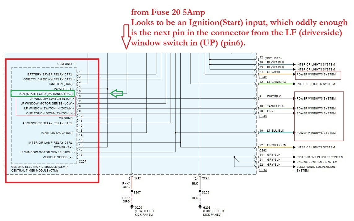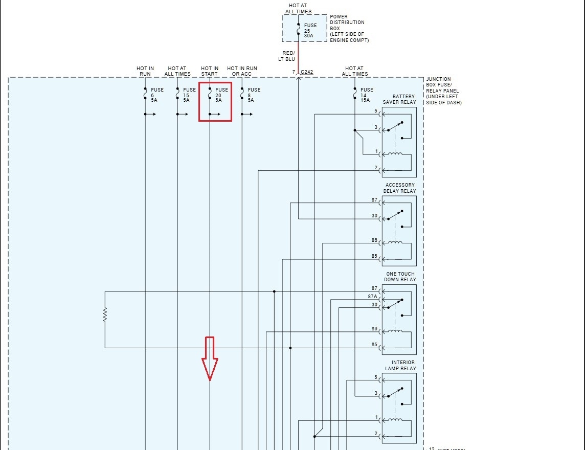 It looks like Fuse 20- 5amp is "Hot in Start". It looks to send a start signal to the PCM through the Clutch Pedal Switch. You're still in a "Crank no start" condition correct? Have you done a test yet to see if youre missing ignition spark or fuel injector control?