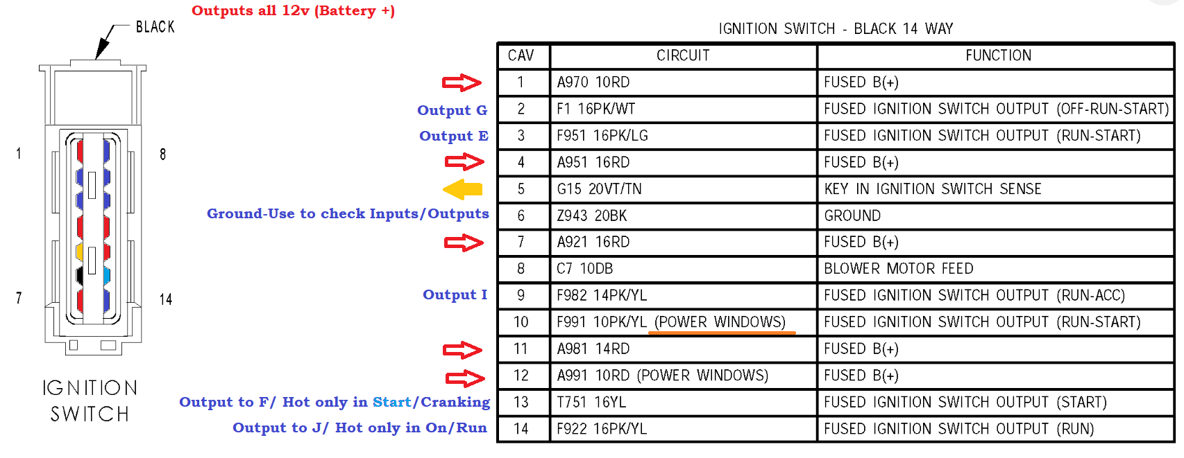 Okay, 6 is a ground, so use that for your ground location while testing to verify its good. Or hook to a 12v source and touch pin 6, you should read 12v. The Key in Ignition Switch sense might be the issue. If the PCM or security system does not sense the correct key or any key at all, then its preventing starting from the Ignition switch. I'll check what is supposed to be there for a voltage signal. I would think just 12volts. But ill verify that.