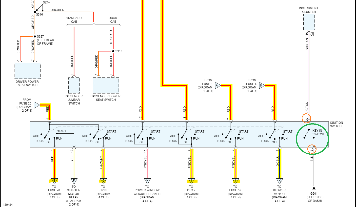 Okay, the 3rd diagram shows what pin 5 and 6 do, they complete a Ground to the BCM, so with the key in the Ignition switch there should be continuity from 5 to 6, and 6 to ground.