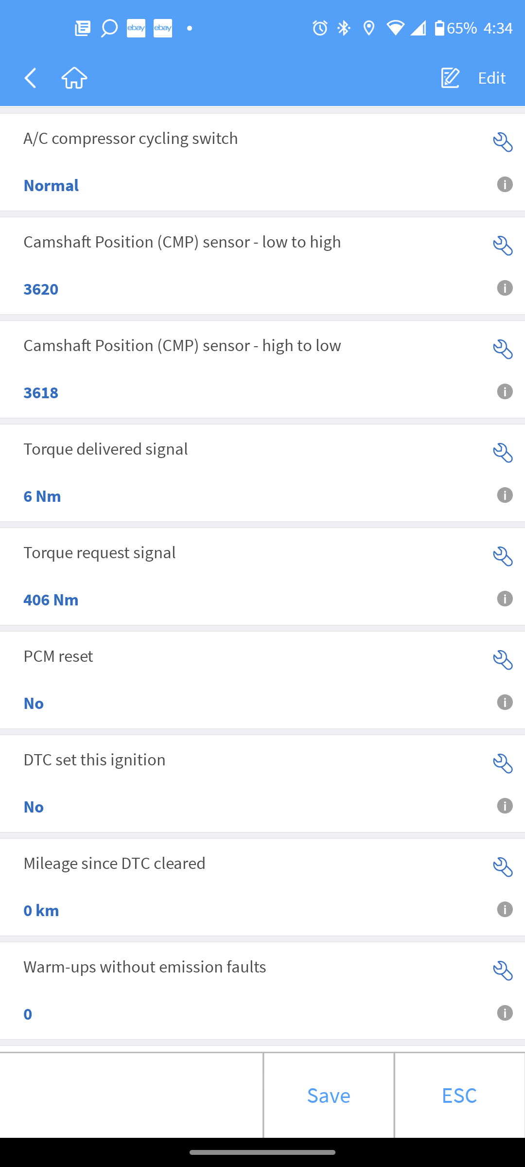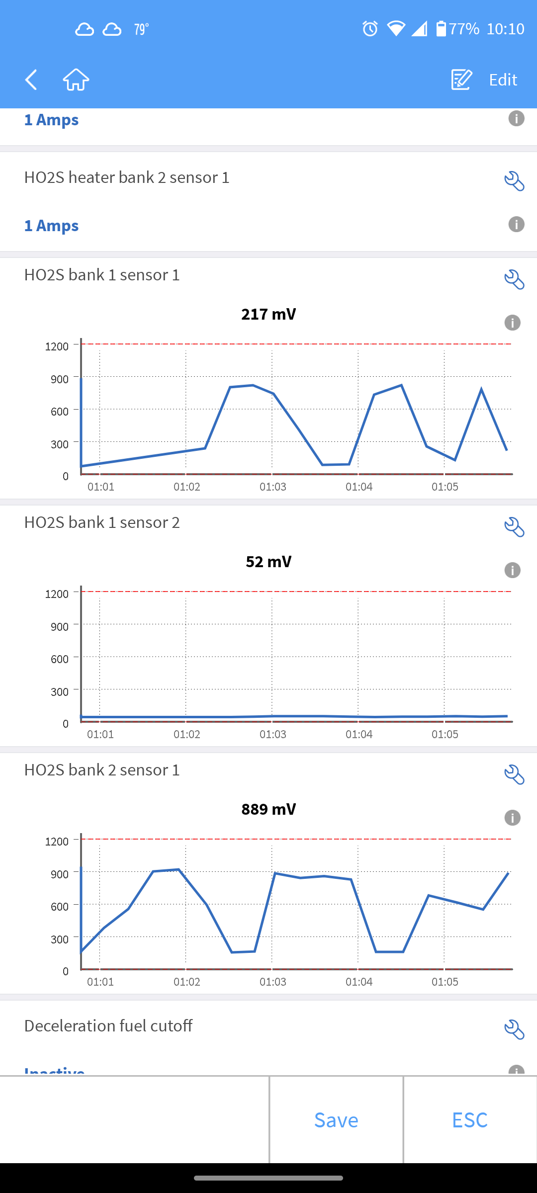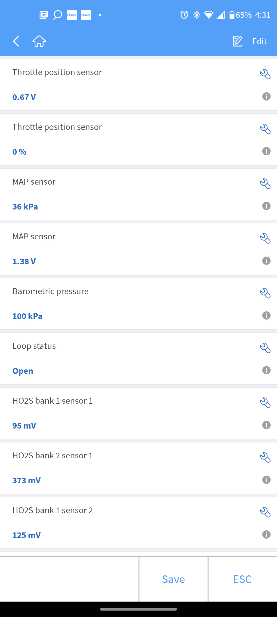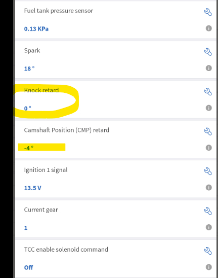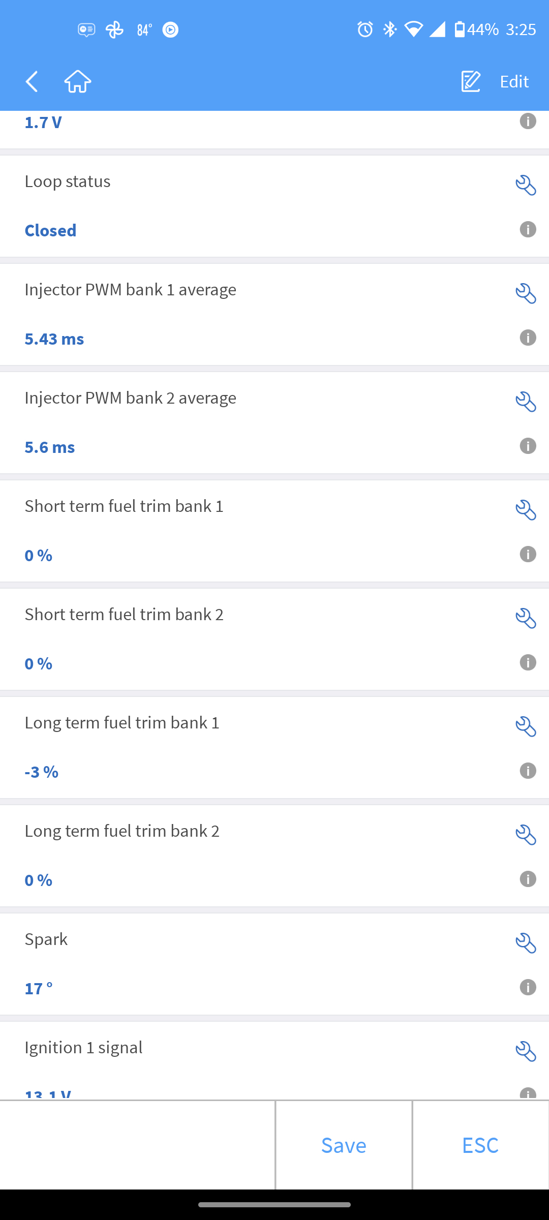 How is this thing running, is it drivable? A couple other things that look odd, Injector pulse is still high, I know this looks like a cold start up too, so it would be a little high due to that, but the pulse width should come down. The Oil Pressure sensor voltage is reading 0 volts, and the Spark advance looks normal at 18 degrees, but the camshaft position is retarded at -4 degrees.