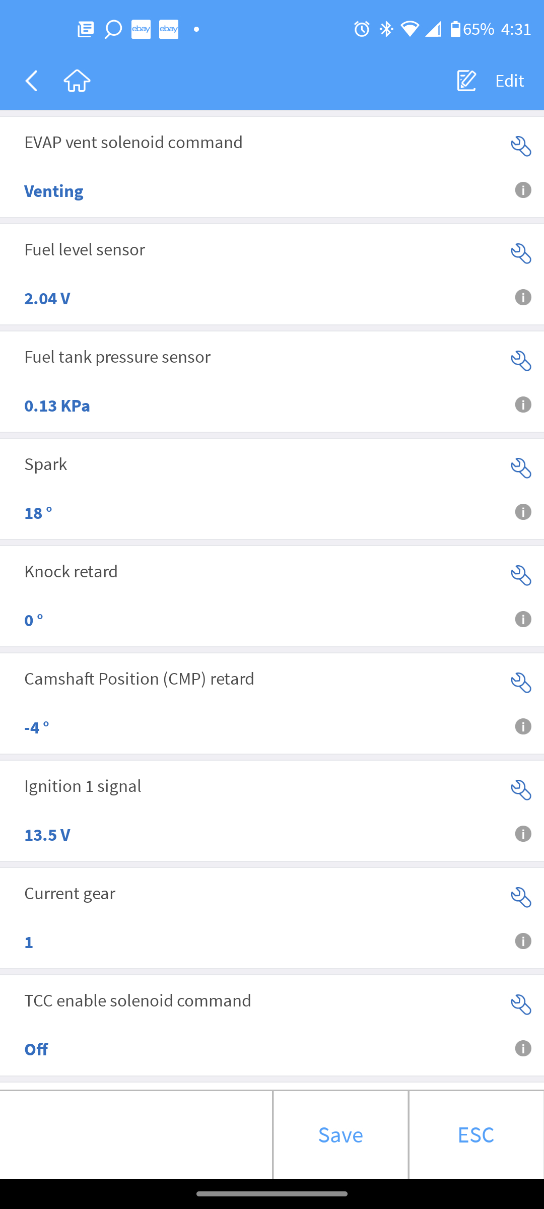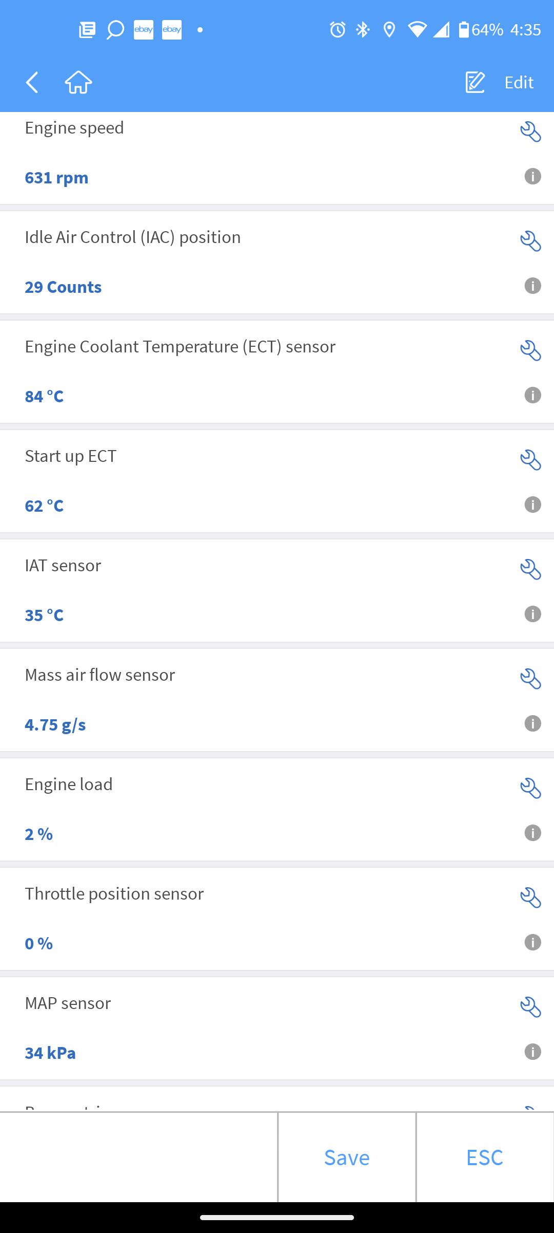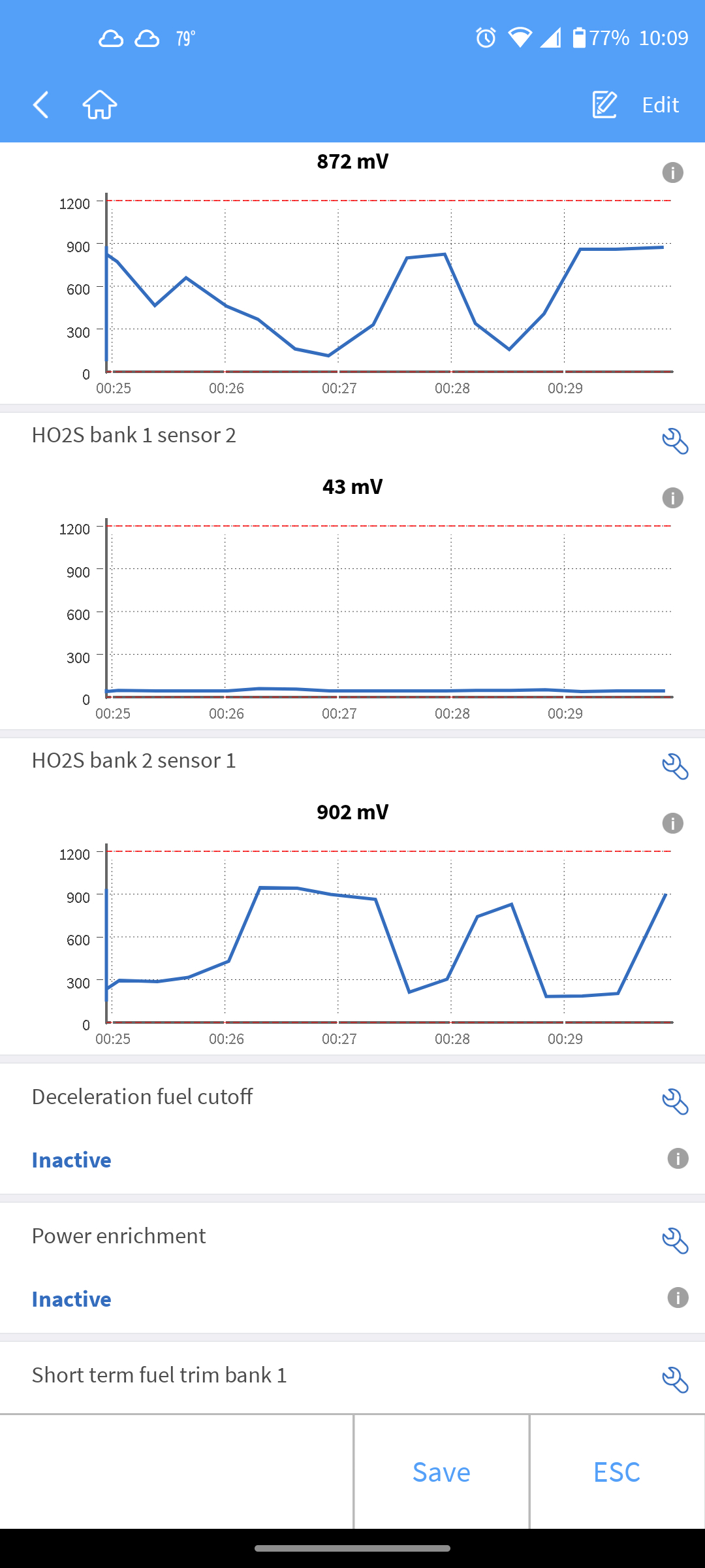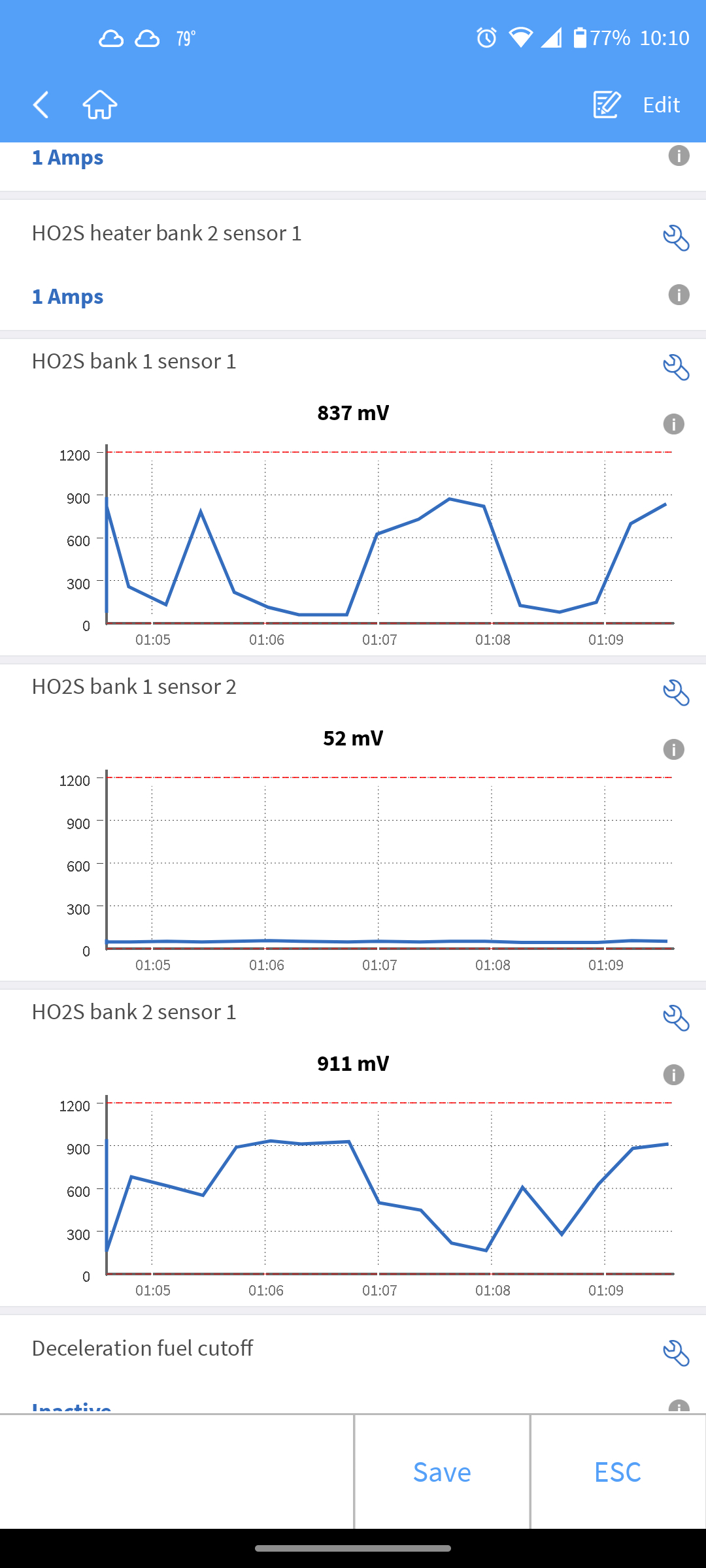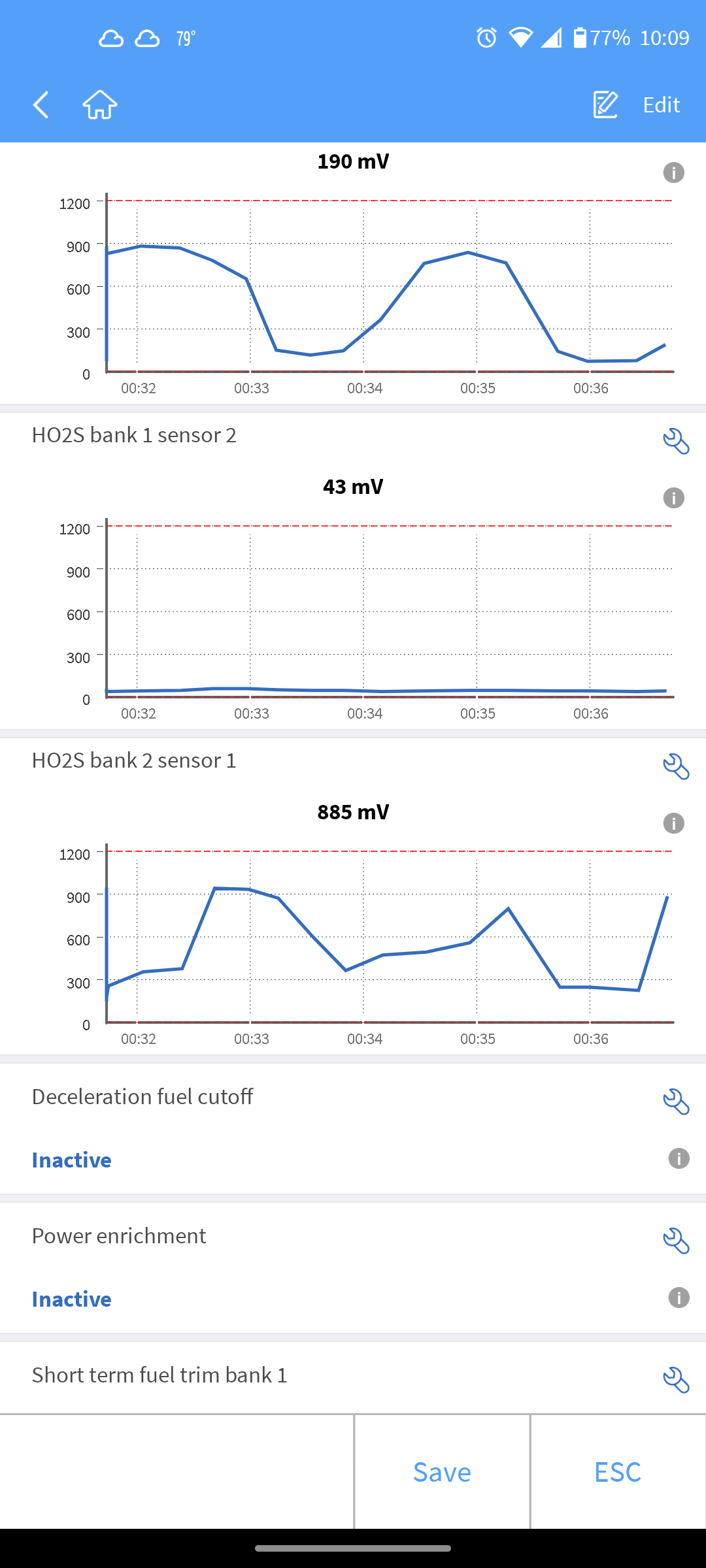 How is this thing running, is it drivable? A couple other things that look odd, Injector pulse is still high, I know this looks like a cold start up too, so it would be a little high due to that, but the pulse width should come down. The Oil Pressure sensor voltage is reading 0 volts, and the Spark advance looks normal at 18 degrees, but the camshaft position is retarded at -4 degrees.