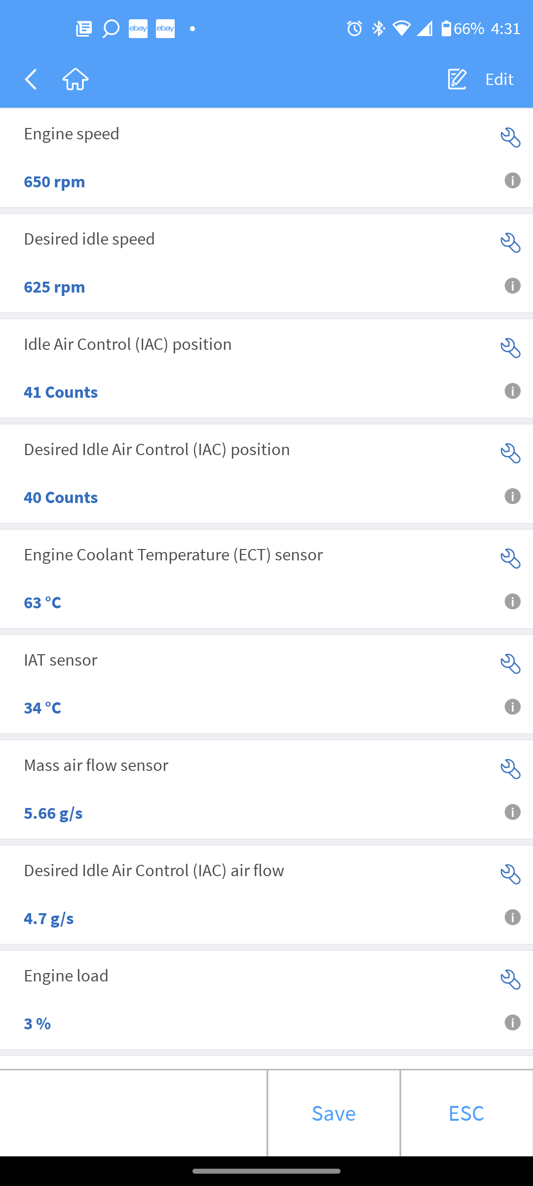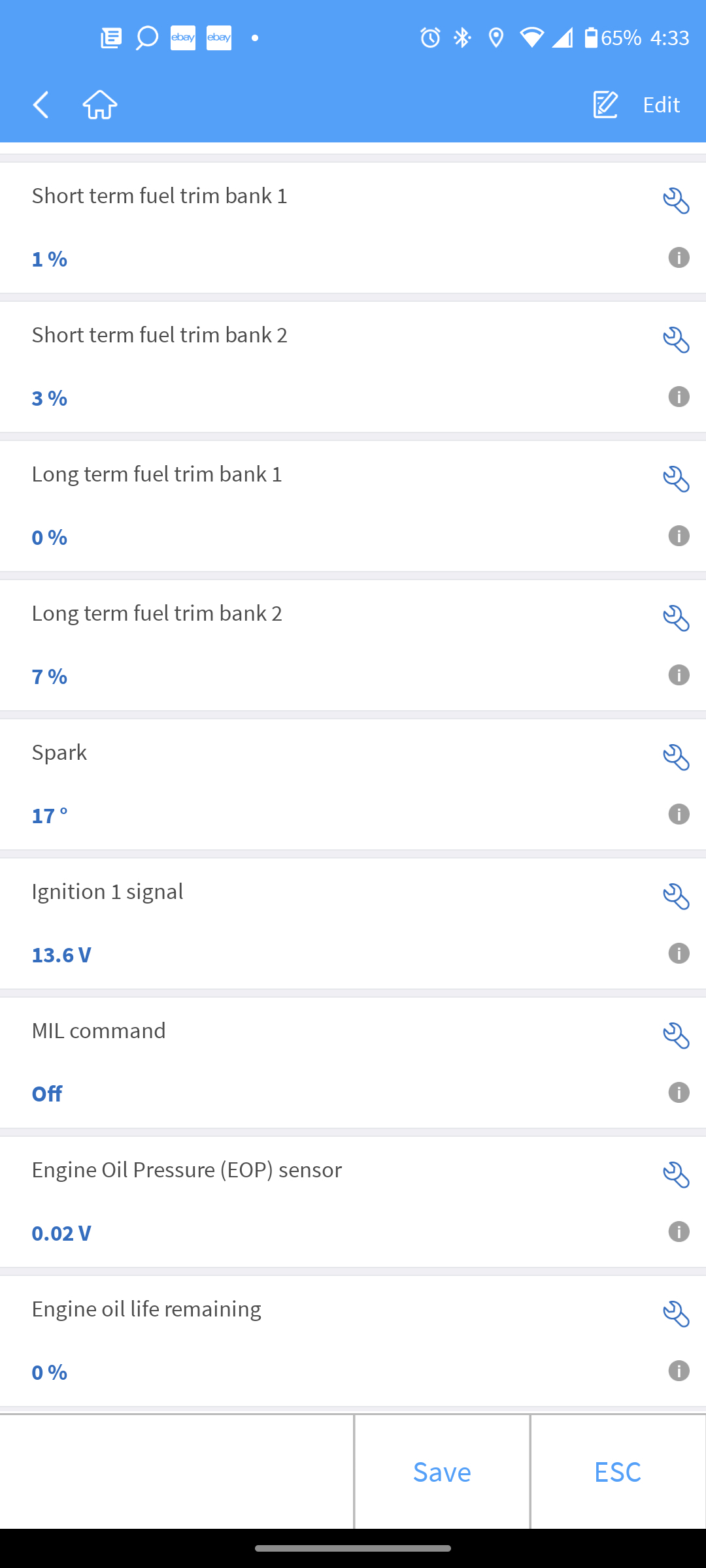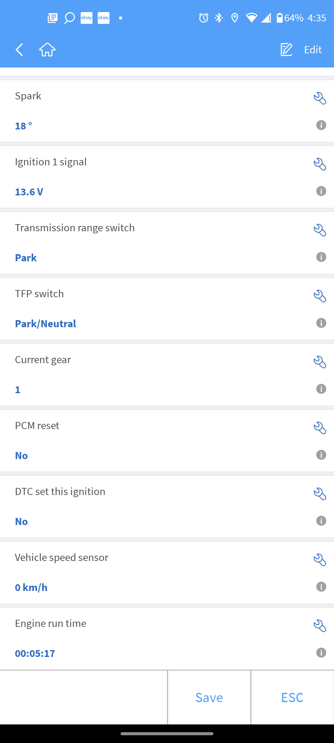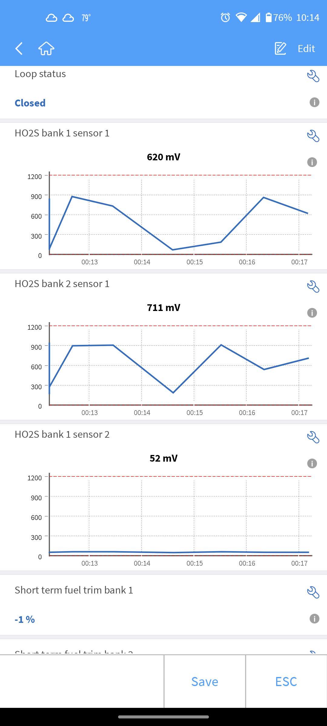 How is this thing running, is it drivable? A couple other things that look odd, Injector pulse is still high, I know this looks like a cold start up too, so it would be a little high due to that, but the pulse width should come down. The Oil Pressure sensor voltage is reading 0 volts, and the Spark advance looks normal at 18 degrees, but the camshaft position is retarded at -4 degrees.