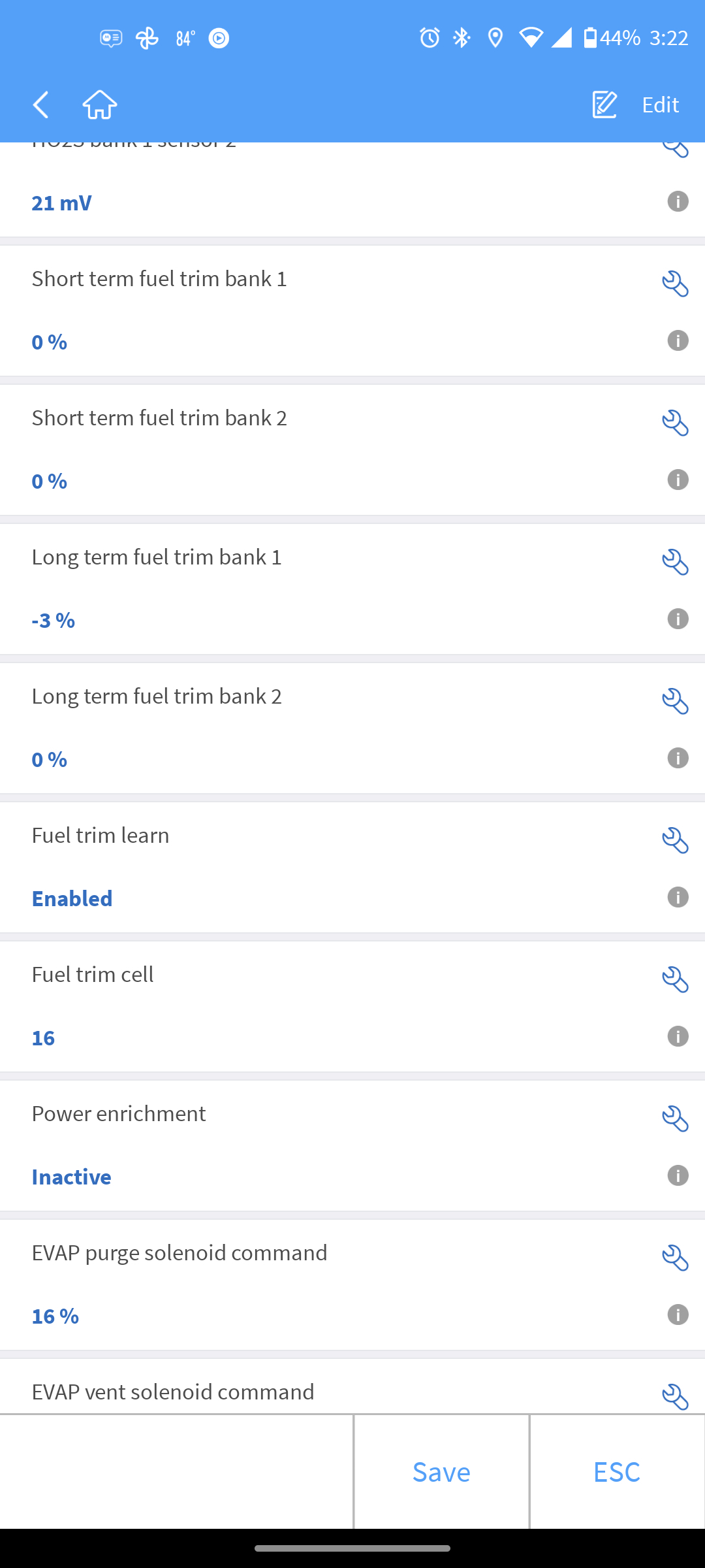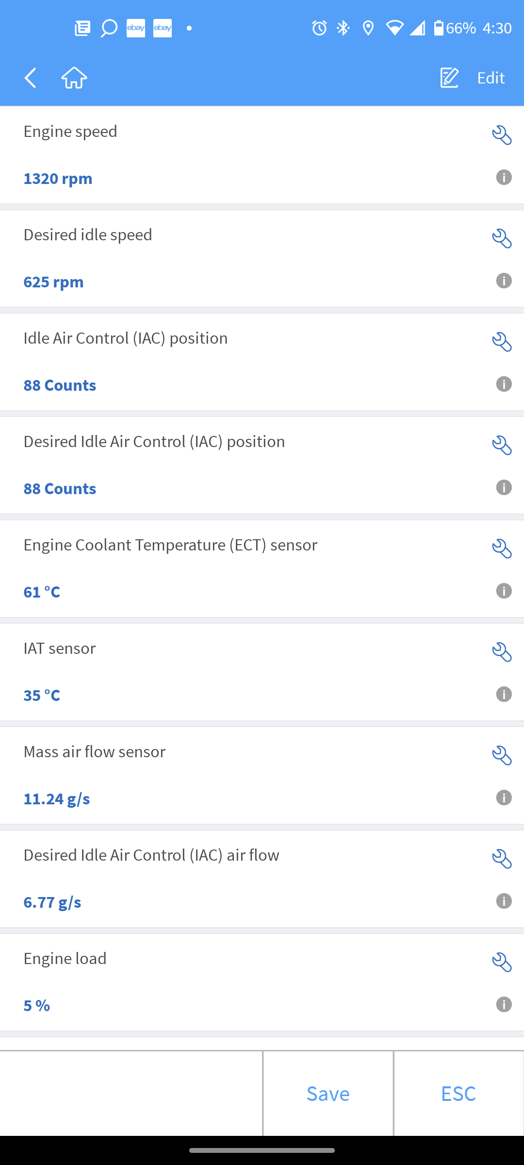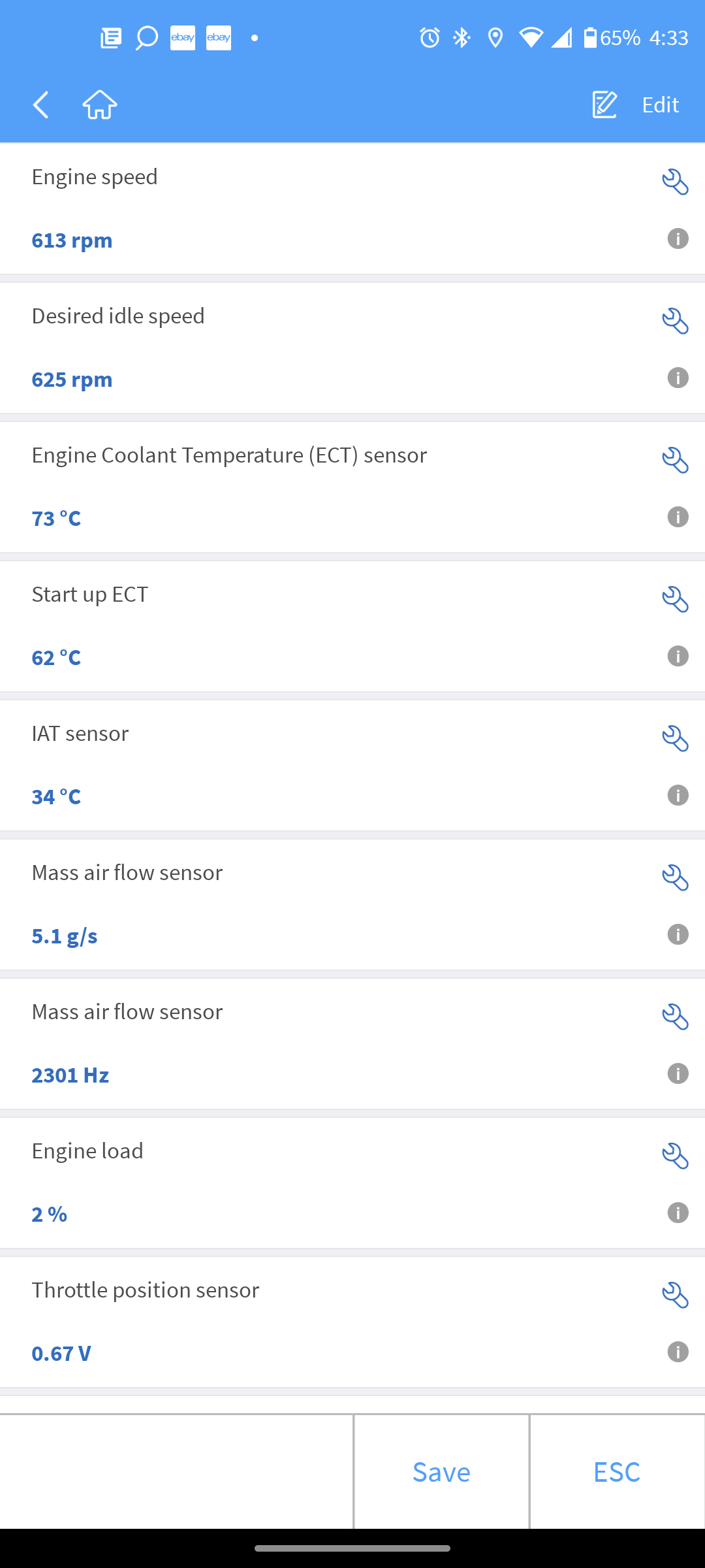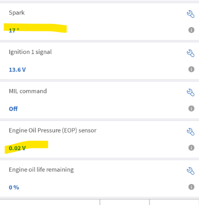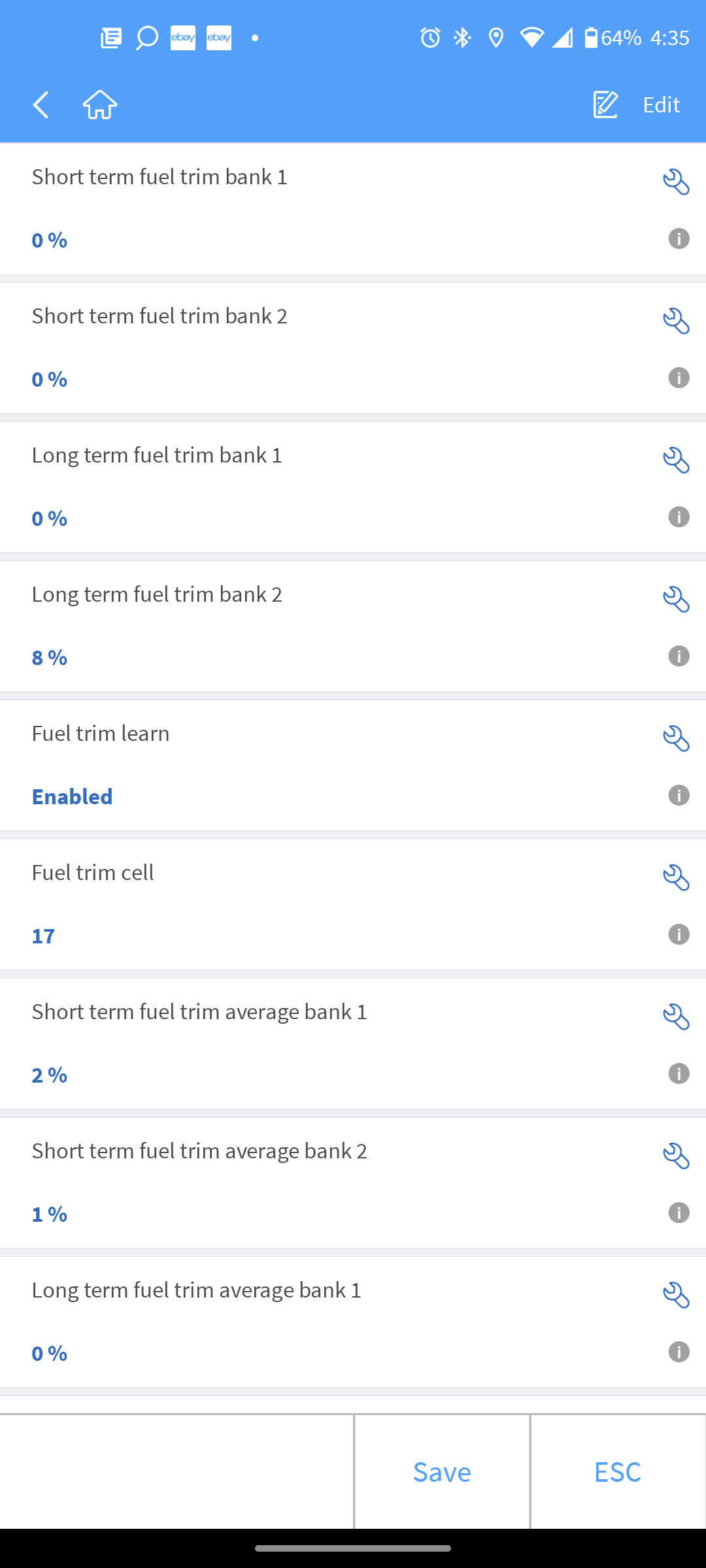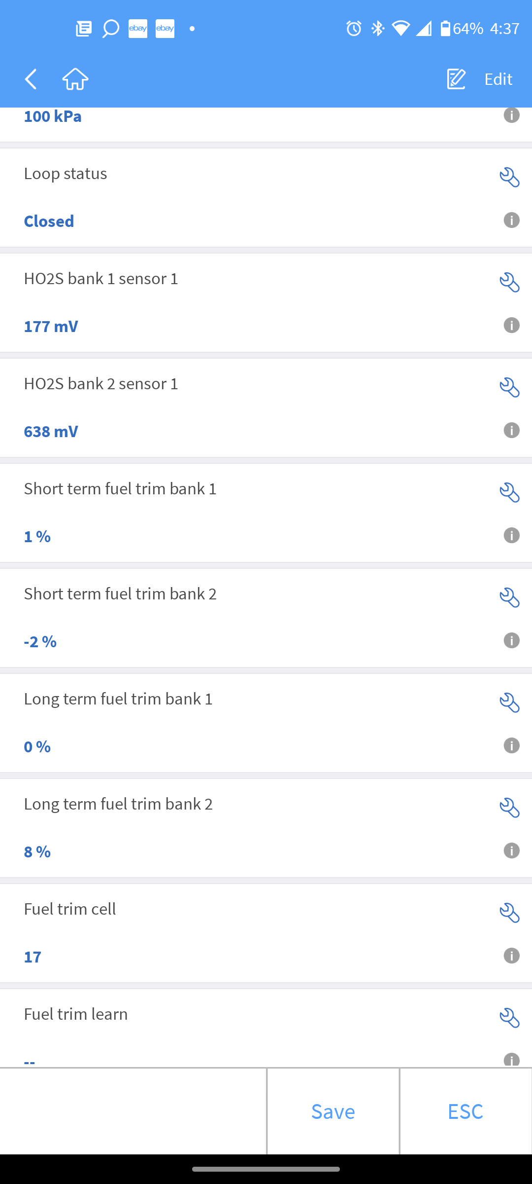 How is this thing running, is it drivable? A couple other things that look odd, Injector pulse is still high, I know this looks like a cold start up too, so it would be a little high due to that, but the pulse width should come down. The Oil Pressure sensor voltage is reading 0 volts, and the Spark advance looks normal at 18 degrees, but the camshaft position is retarded at -4 degrees.
