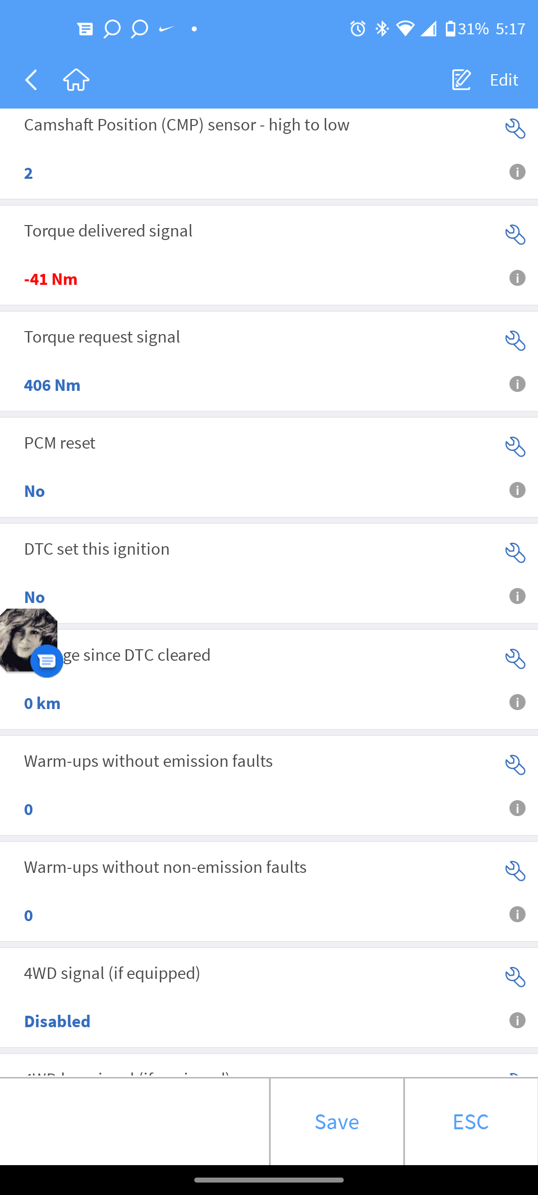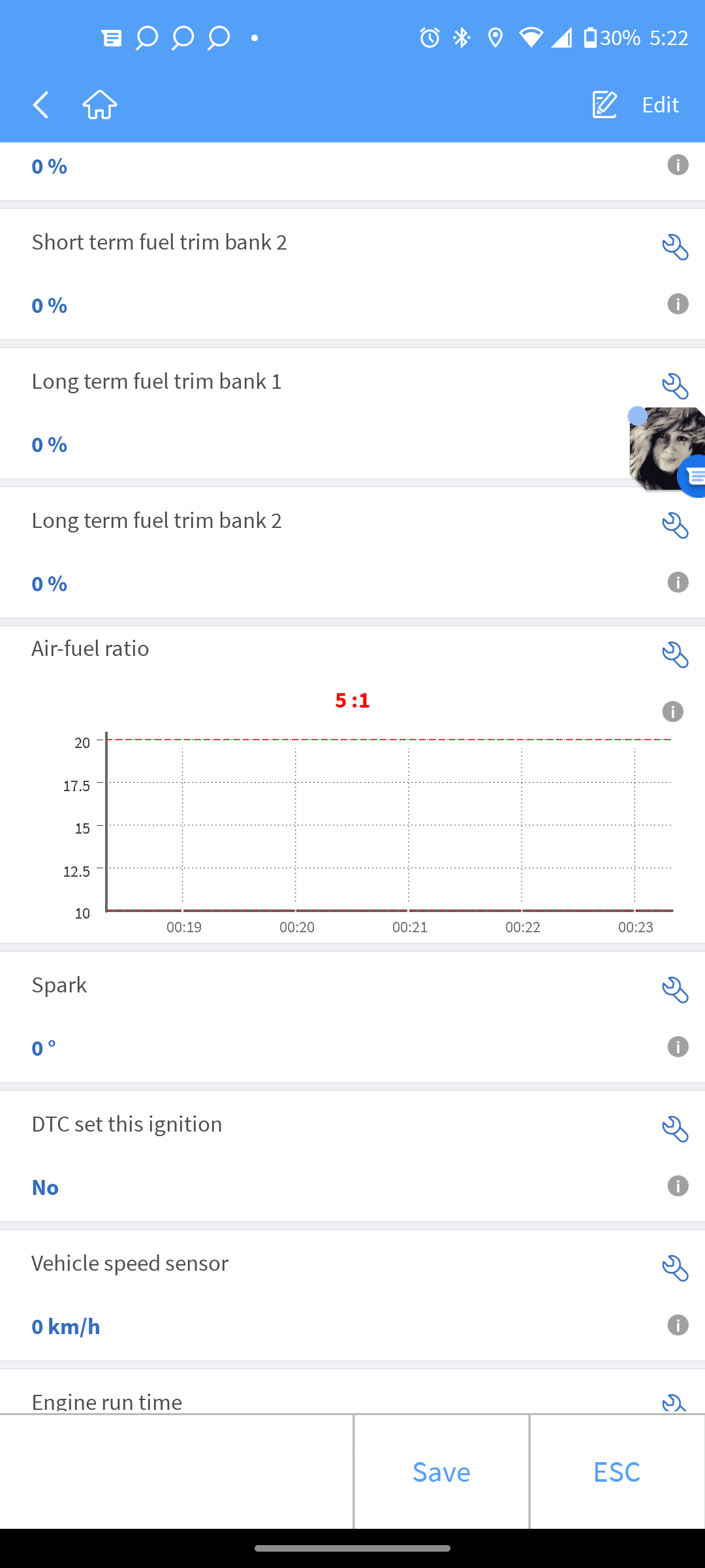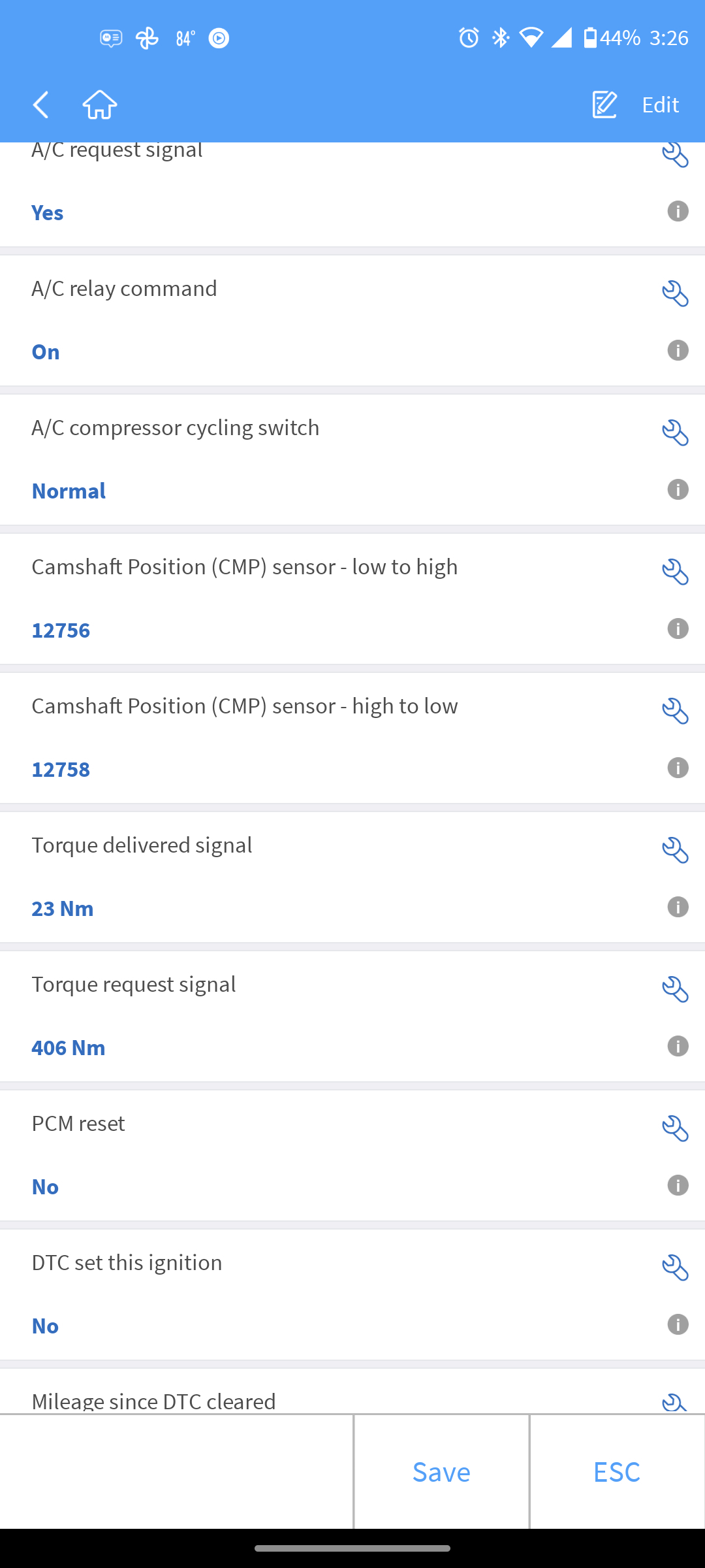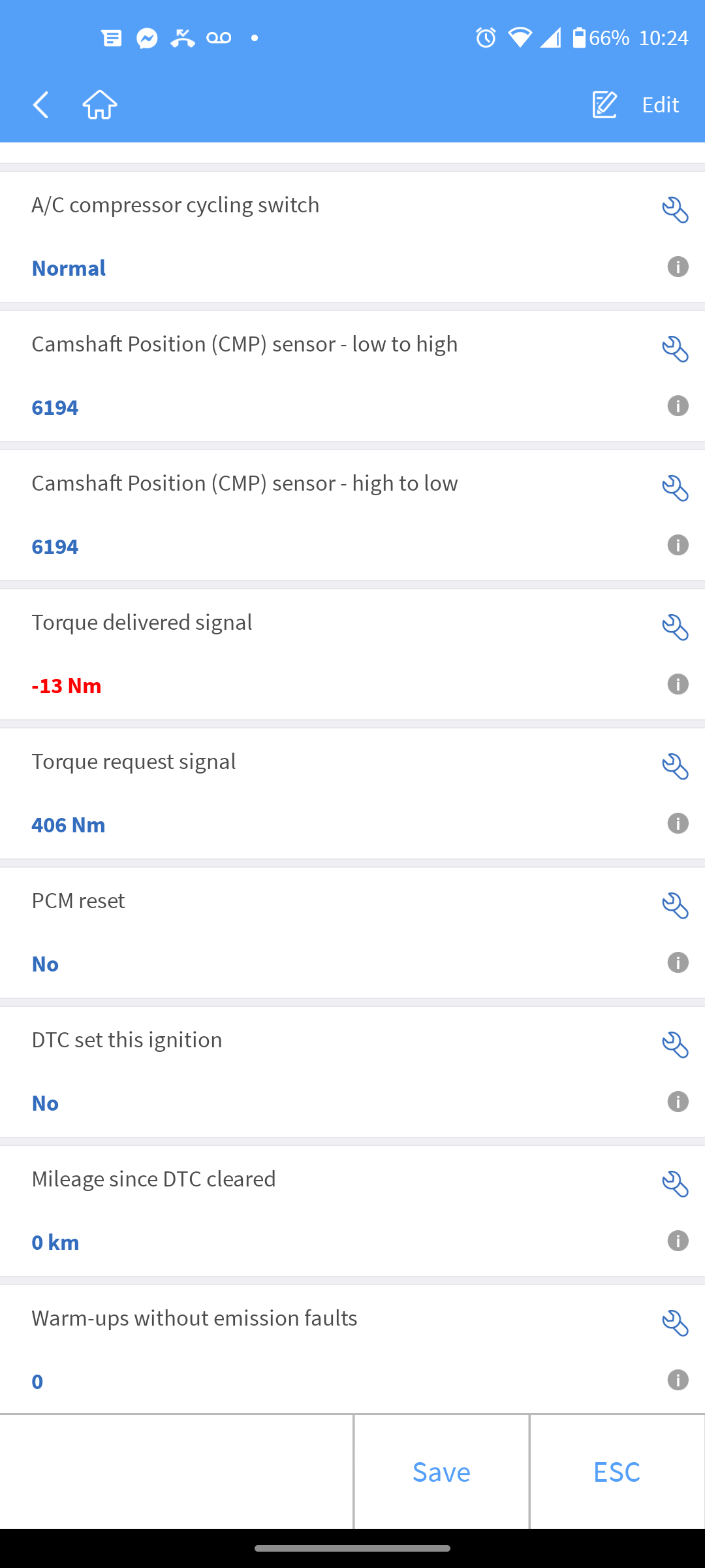 How is this thing running, is it drivable? A couple other things that look odd, Injector pulse is still high, I know this looks like a cold start up too, so it would be a little high due to that, but the pulse width should come down. The Oil Pressure sensor voltage is reading 0 volts, and the Spark advance looks normal at 18 degrees, but the camshaft position is retarded at -4 degrees.