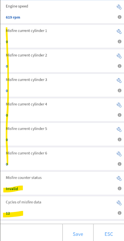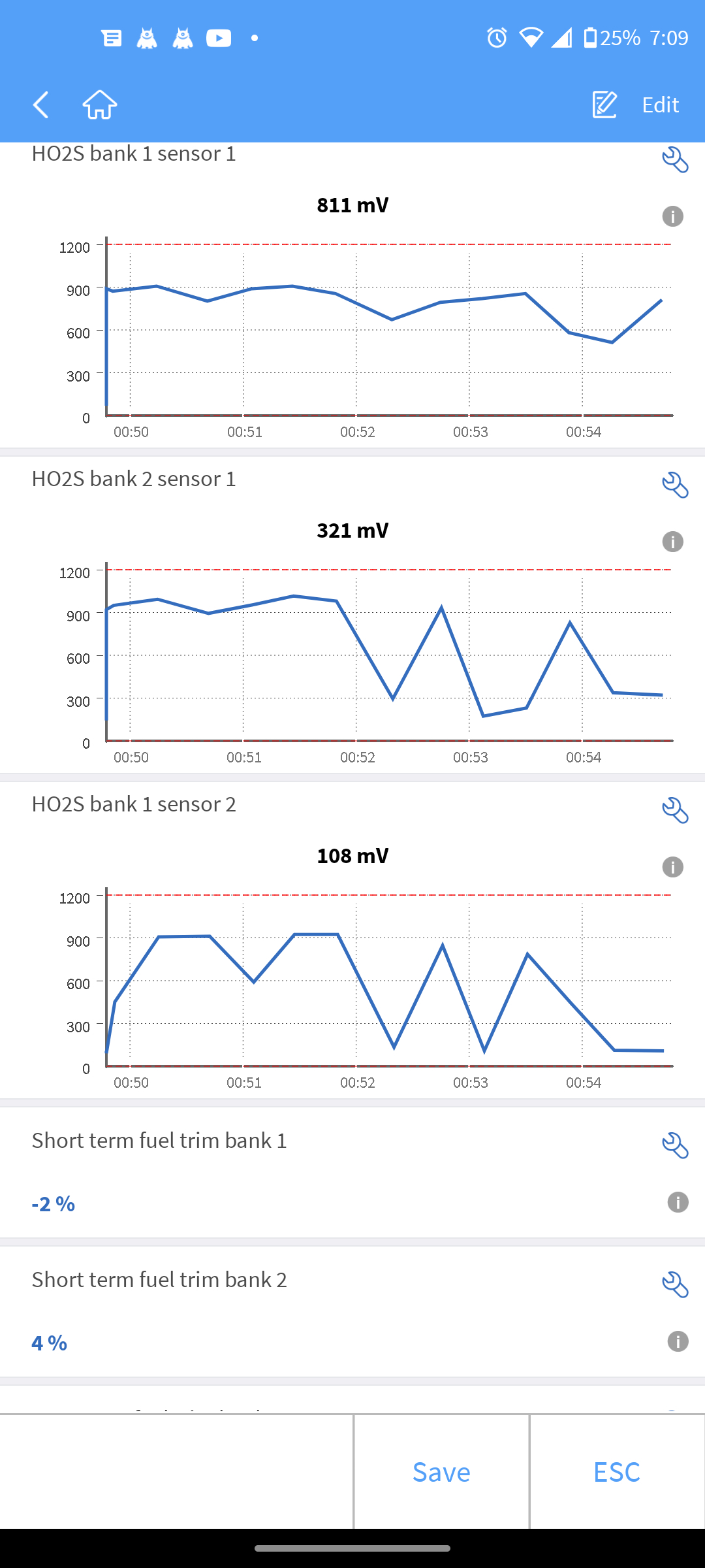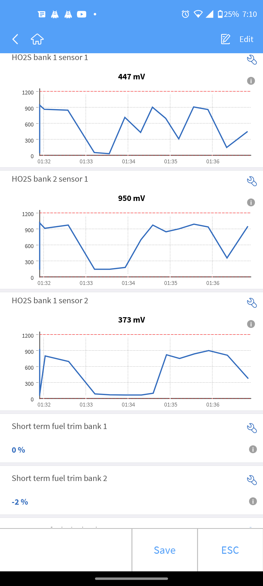 You weren't able to Graph the Oxygen sensors voltage PIDs? Are any of them staying low, for example I see Bank 1 Sensor 1 34mv, 134mv, is it staying that low? Both front Oxygen sensors (Bank 1 Sensor 1) and (Bank 2 Sensor 1) should be cycling from 0.200 to 0.800mv roughly. I'm having a hard time pulling up some of these pages because there's so many, but I do see Misfire Counter Status (Invalid), but 12 Cycles of misfire data. Also, no cylinders are counting misfires.