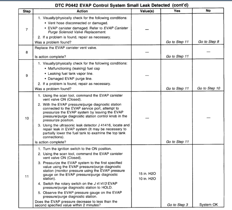 2. If a EVAP canister vent valve or EVAP purge valve electrical malfunction is present, the purge system will not operate correctly. Repairing the electrical malfunction will very likely correct the condition that set DTC P0442.