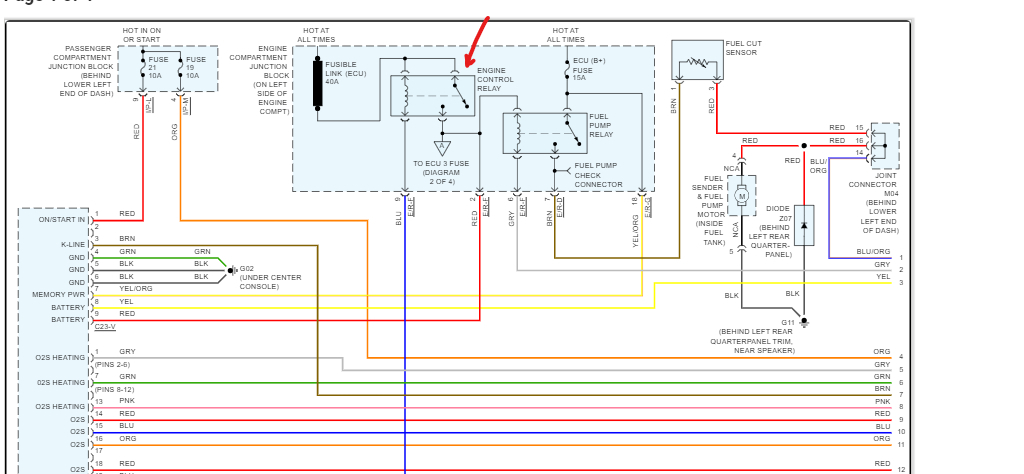 I have no power to my fuel pump no power to my fuel cut off switch and no power to 3 ECU fuses, two 20-amp fuses and one 10-amp fuse. What I need is a wiring diagram, can you help me are do you know what's wrong?