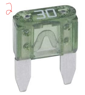 2)-30-amp fuse because seems to be a 30-amp circuit to power the coils and injectors. Get a pack of 5 if you can.