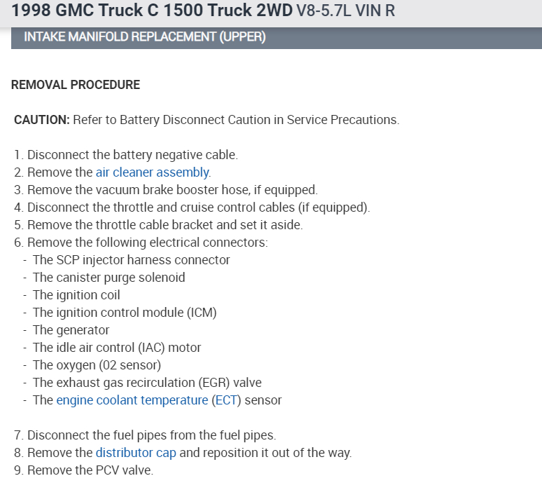3. Remove the Upper Manifold Assembly. Refer to Engine Mechanical.