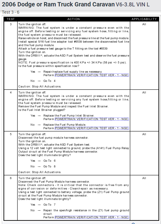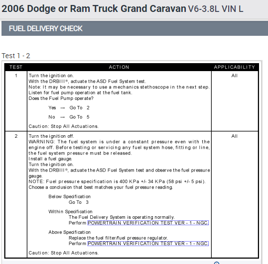 Car was parked for over a year. Put in new battery. Engine started with no problems. I went to work in different car. Did not remember to turn car off. 2 weeks it sat with key in the ignition before I remembered! Put in gas charged battery. Engine cranks but will not start. Pump primes when ignition switched on. Tachometer at approximately 500 RPMs while cranking. Spray starter fluid into throttle body and engine starts but will not continue running. Sounds great when this happens. From this I conclude: 1. Fuel pump turns on. 2. Engine has good spark. 3. Cam sensor is picking up rotation. 4. Crank position sensor is good. 5. Car is not getting fuel. Swapped ASD relay and Fuel Pump Relay with new to rule them out. No effect. How do I check if fuel is getting to the injector rail? How do I check fuel pressure? Is there codes for that I have OBD2 scanner?