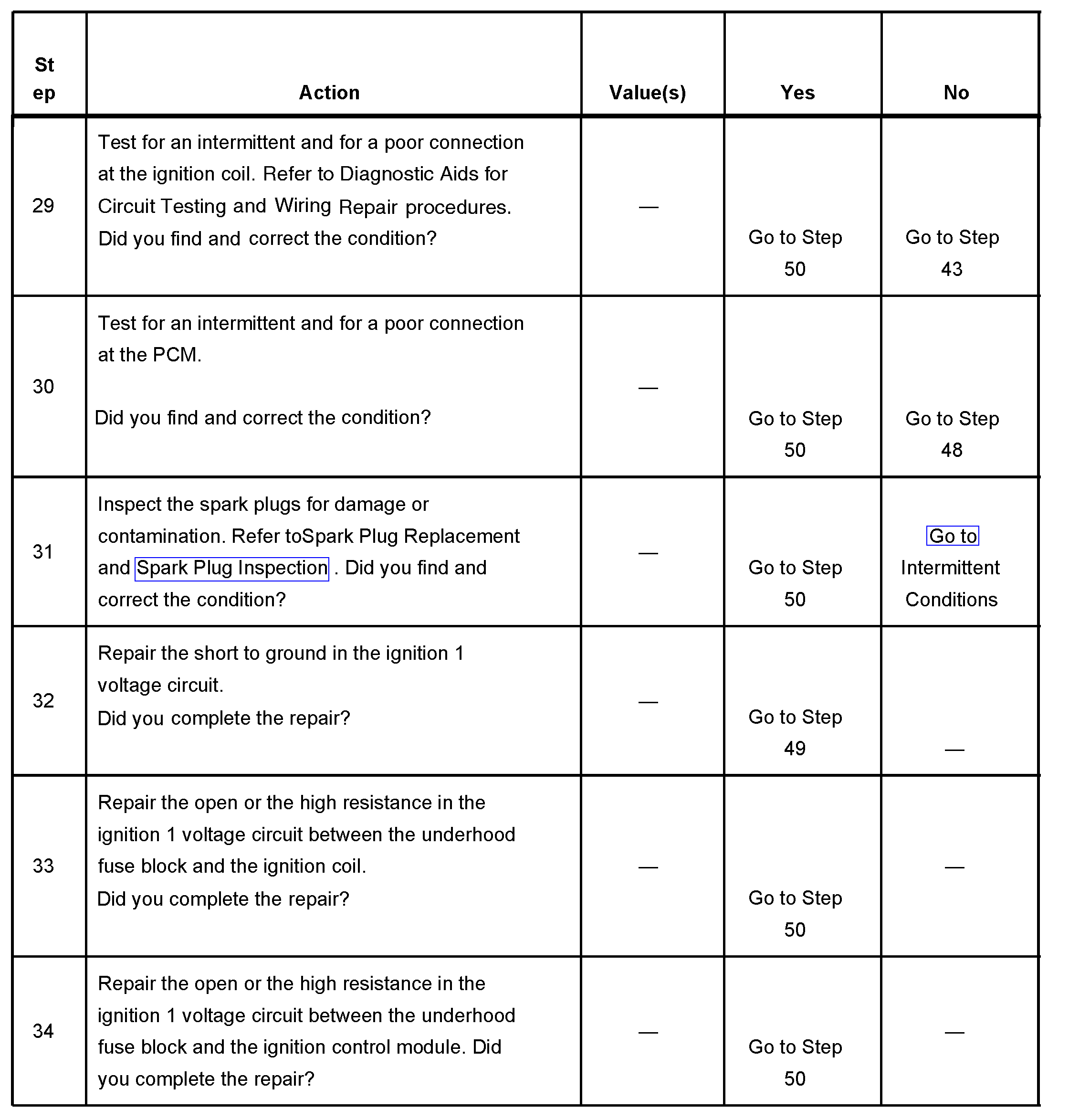 An intermittent may be caused by a poor connection, rubbed through wire insulation, or a wire broken inside the insulation. Refer to Testing for Intermittent and Poor Connections in Diagnostic Aids. If a repair is necessary, refer to Wiring Repairs in Diagnostic Aids.