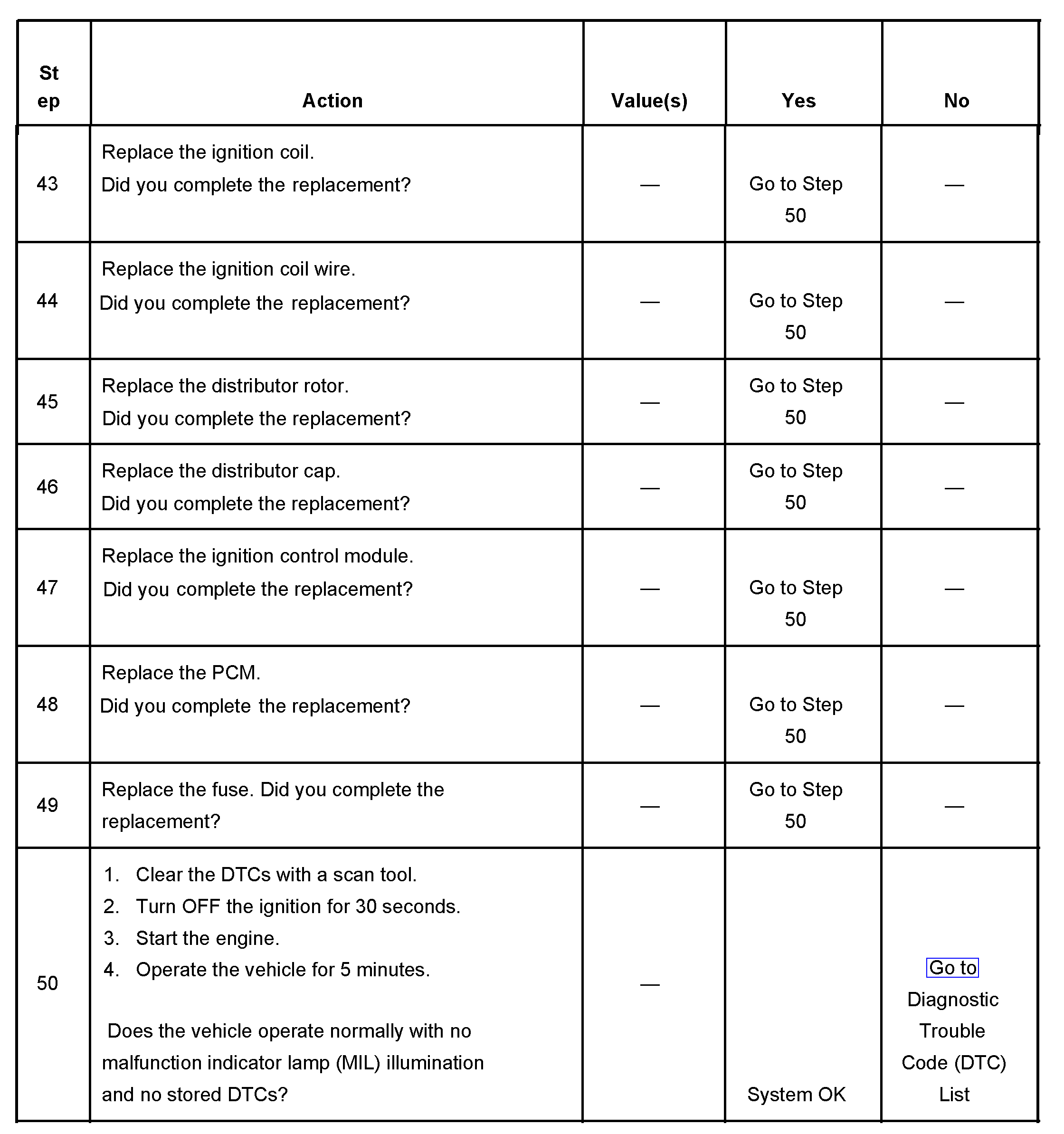 The Distributor Ignition (DI) System Diagnostic Table assumes the following conditions: