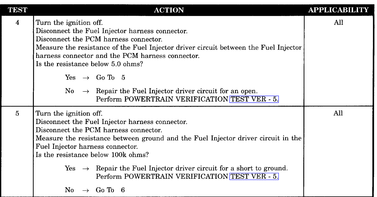 - Fuel injector driver circuit shorted to ground