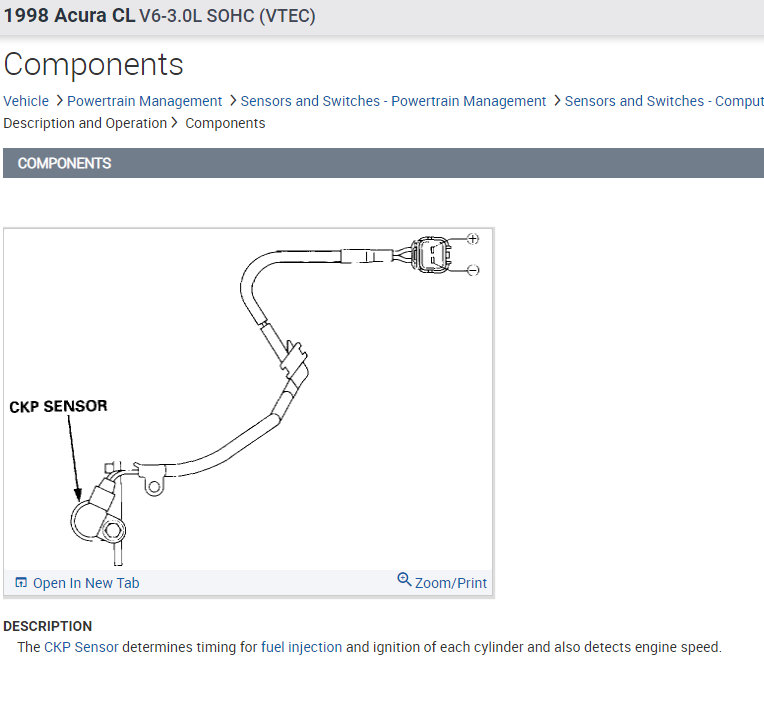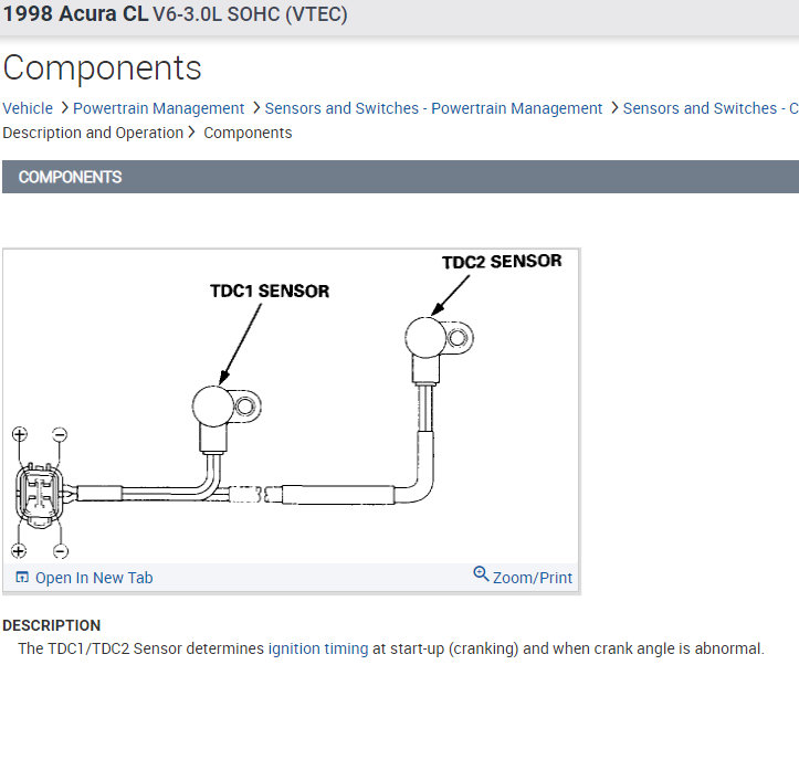 Acura calls the cam sensor as TDC sensor and the crank sensor CKP sensor.