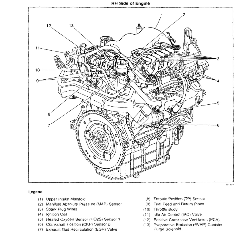 CKP (7X) is located lower right side of engine on the 3.4L and the CKP (24X) is located left front of engine on the 3.4L.