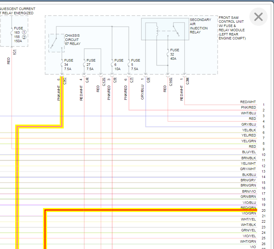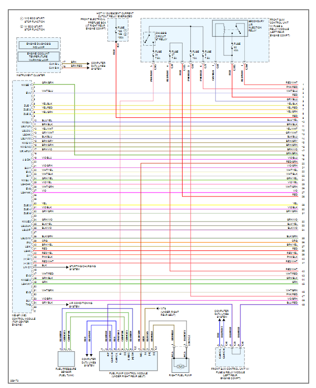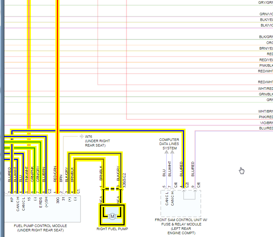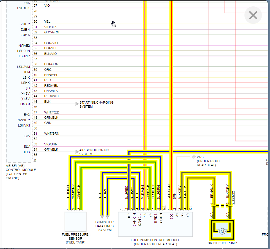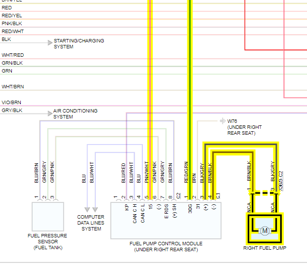 Hi, I am currently working on the car listed above. I have checked the fuse and relay relating to it, they have no problem. There is spark coming from the spark plugs, the fuel injectors were pulsing but when I checked the fuel rail, I realized that the fuel pump is not pumping out fuel. I located the fuel pump under the back seat, I tested it there was no power source, I tested the fuel pump control module, there's power source on one of the small wires but there is no power source in any of the wires that connected the module and the fuel pump.