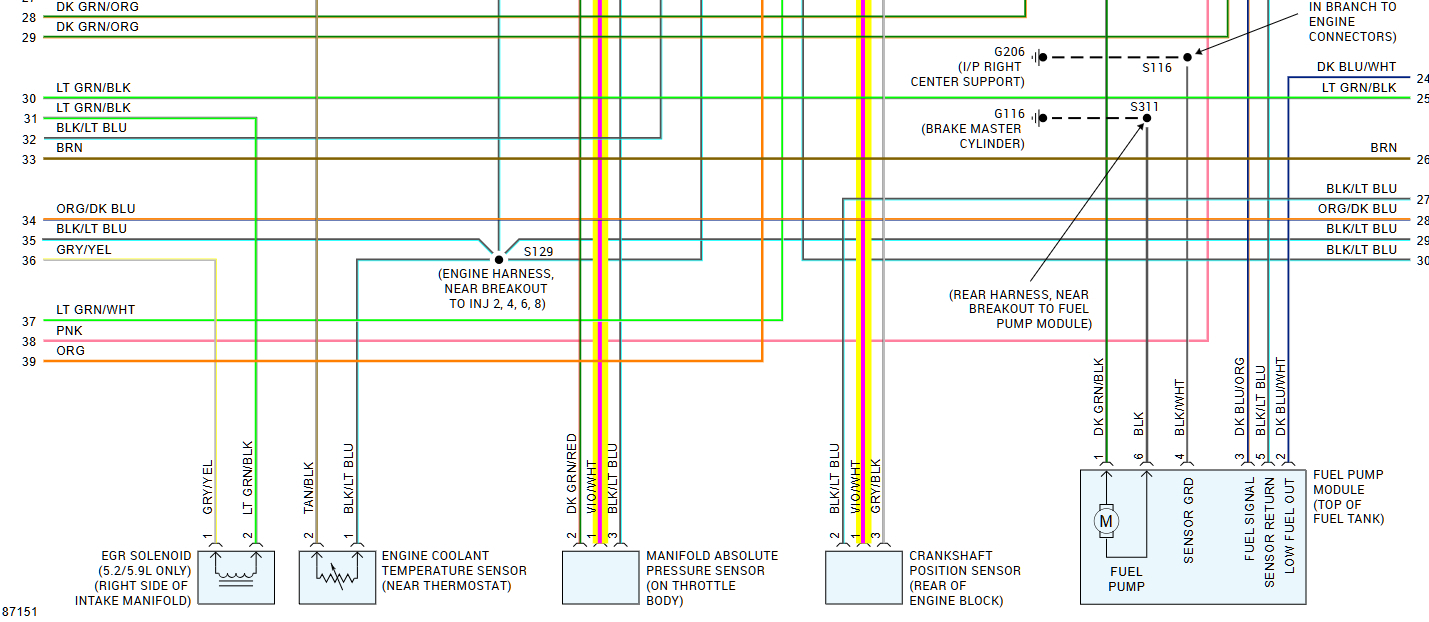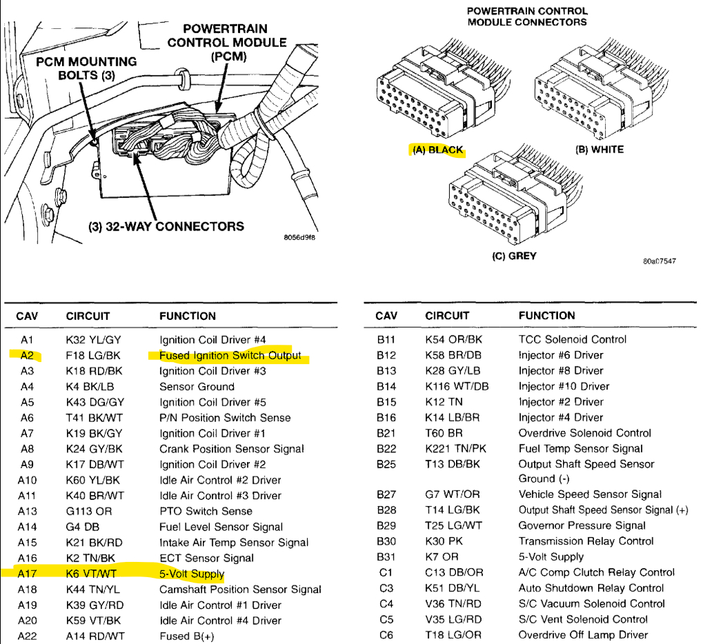 Ok, Do you have battery voltage at those relays though? If so, then with the MAP ref voltage being so low, start to unplug any 3 wire sensor that uses a 5 volt reference. Do them one at a time and see if the 5 volts comes back, because if a sensor is shorting the 5volt ref down, it will cause the PCM to go down as well. This is a common fault. The crank sensor also uses a 5volt ref. But start with the MAP, unplug it check for the 5volts, if its still at the same reading, plug the MAP back in and move on to the next 3 wire sensor. You can even just monitor the 5v ref at the MAP while unplugging other sensors. On an older vehicle like this the reference voltage will be a shared 5v. Ill post all the other sensors that use the ref voltage.