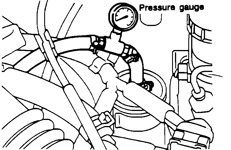 5. Disconnect fuel line from fuel filter and connect a suitable pressure gauge as shown.