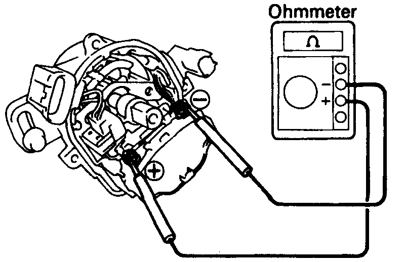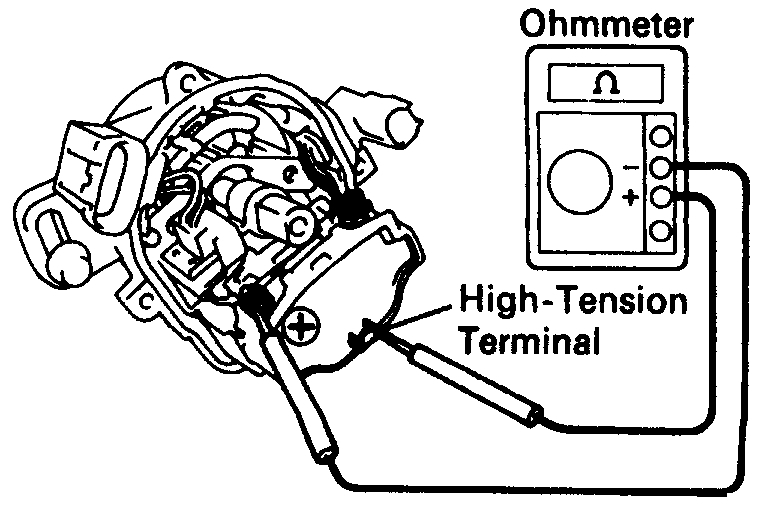 -Using an ohmmeter, measure the resistance between positive (+) and high-tension terminals.