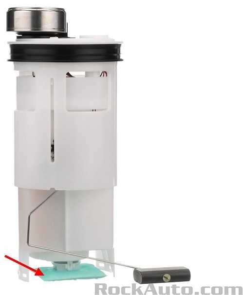 An alternative that I would perform for my own vehicle, but not for a customer, is to remove the pump assembly and cut a slit in the screen or just remove it. You'll still have the main filter on the right frame rail just ahead of the right rear tire, but there's one more detail to be aware of. Chrysler fuel pumps are built to very tight clearances to make them quiet, but that makes them easy to develop plugged impellers. It was common to go through four or five aftermarket replacement pumps, each failing within a few weeks, then, out of frustration, people would buy a new pump from the dealer and have no more problems.