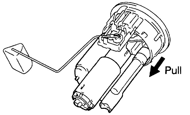 (b)Lift up the fuel pump and sender gauge assembly, and disconnect the fuel sub suction hose from the fuel return jet tube and remove the fuel pump, sender gauge assembly and gasket.