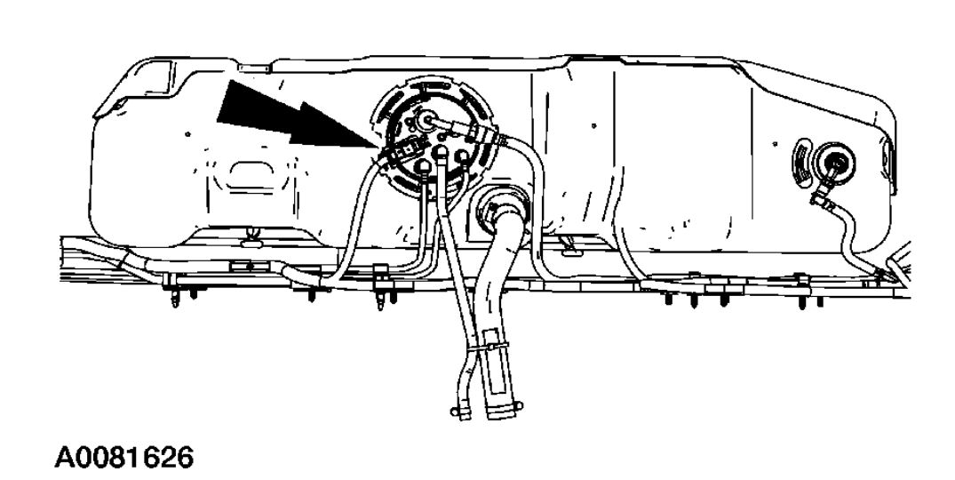 9. Disconnect the fuel supply line, return line and fuel vapor push-connect fittings at the fuel pump.